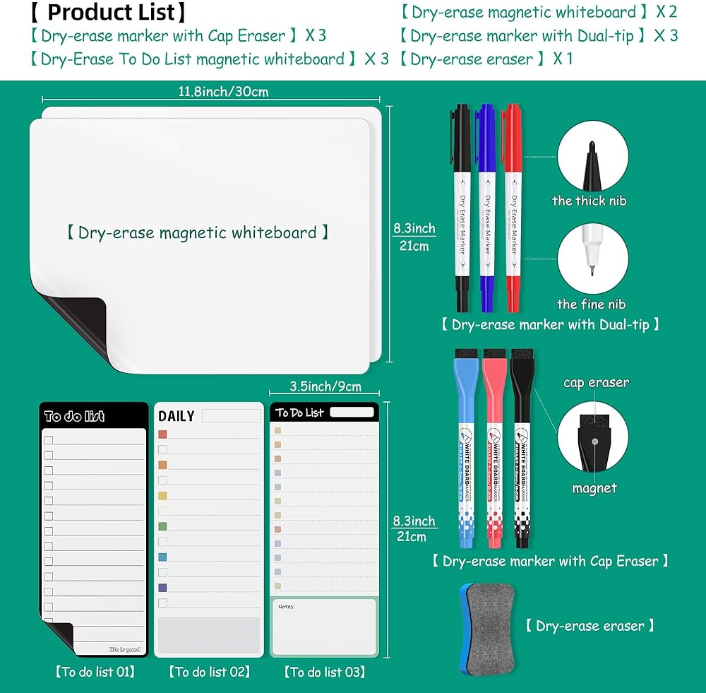 • 【Complete Accessory Set】Includes 6 dry erase markers, an eraser, and 3 magnetic to-do lists to help you stay organized and productive.
