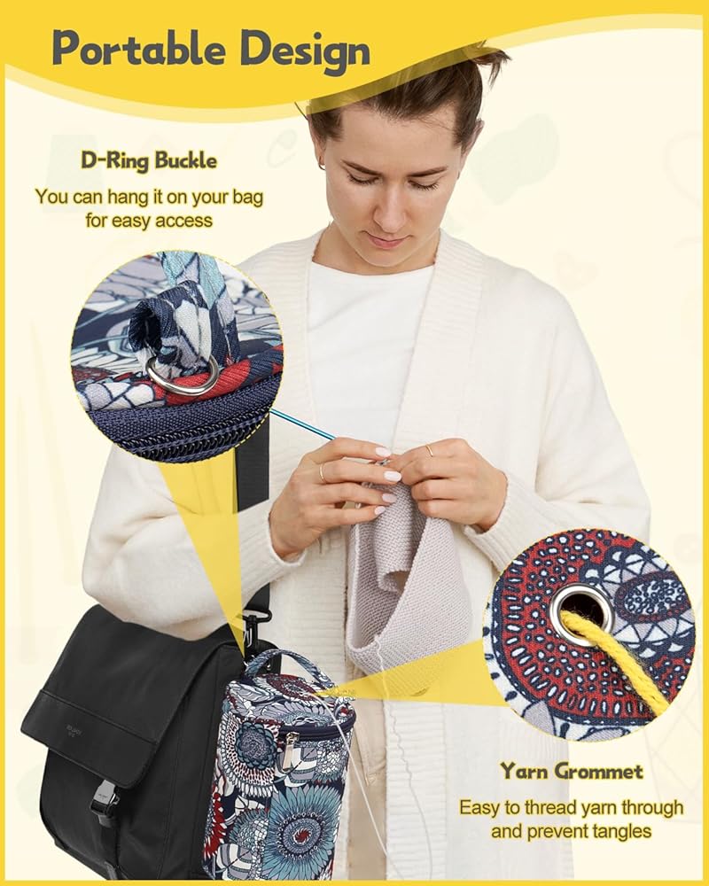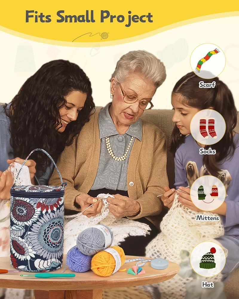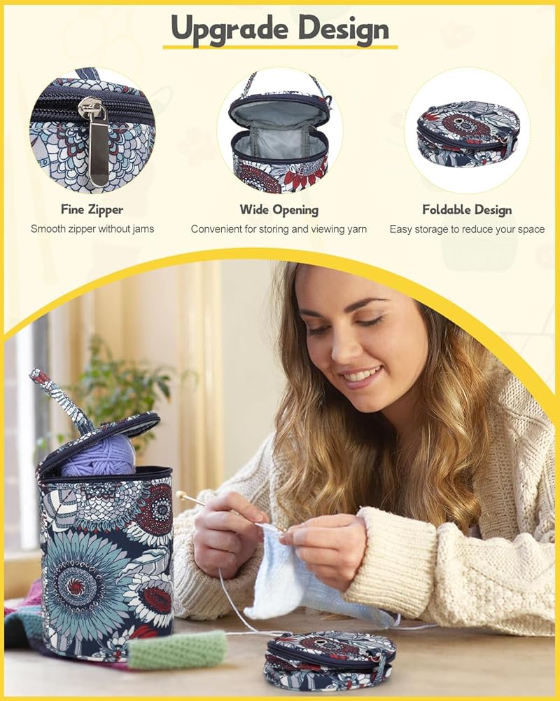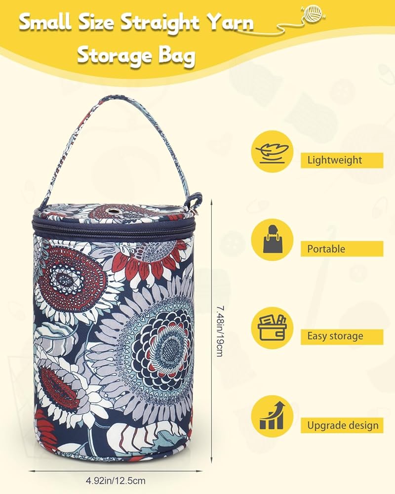 Coopay Yarn Case Small Yarn Tote, Mini Yarns Drum Knitting Bag Yarn Organizer for Crochet Hook Set, Short Knitting Needles, Skein of Yarn, Knitting and Crochet Supplies
