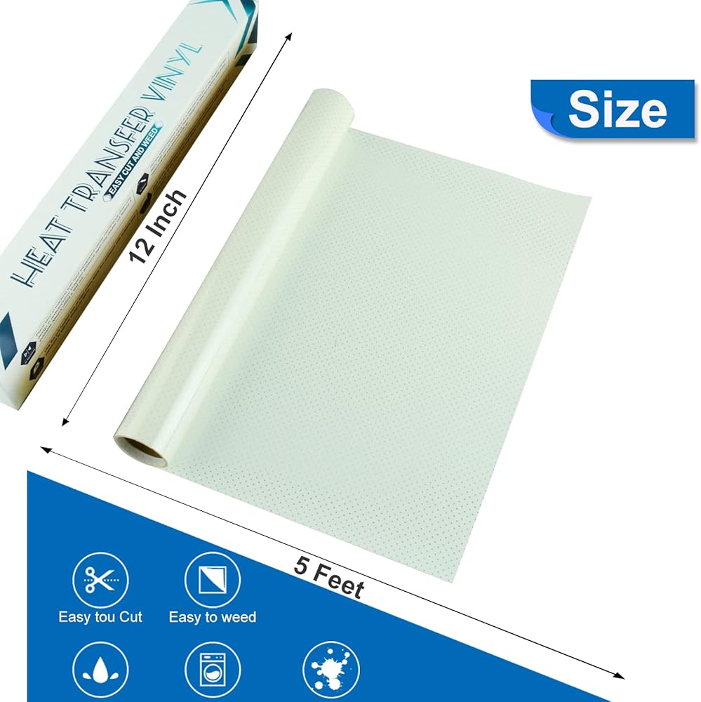 فتحة شبكية HTV فينيل نقل الحرارة - 12 بوصة × 5 أقدام من البولي يوريثان شبكة مثقوبة من الحديد على لفات الفينيل لـ T-Shir، شبكة فينيل HTV للملابس DIY (أبيض)