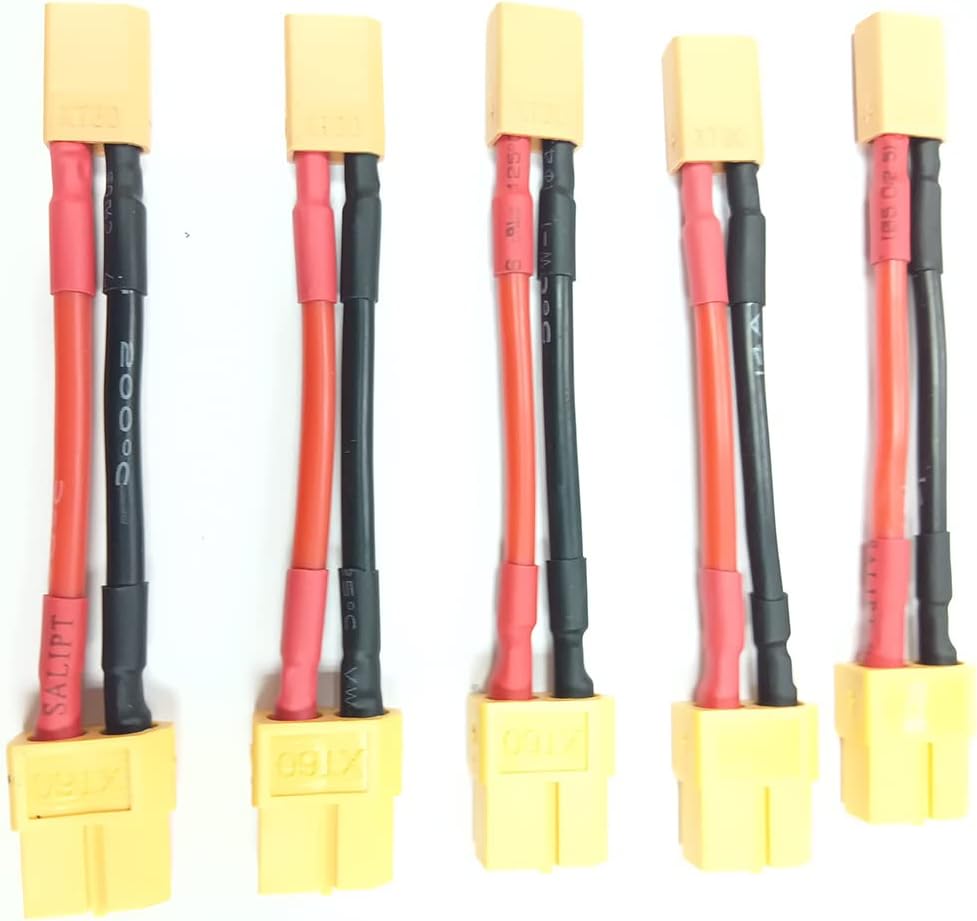Packing Included:. 5pcs XT60 plug female XT30 male extension adapter cable leads 14awg 50mm