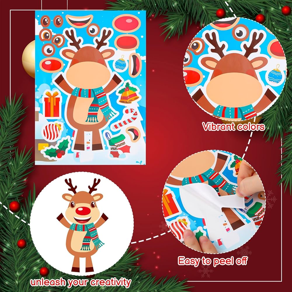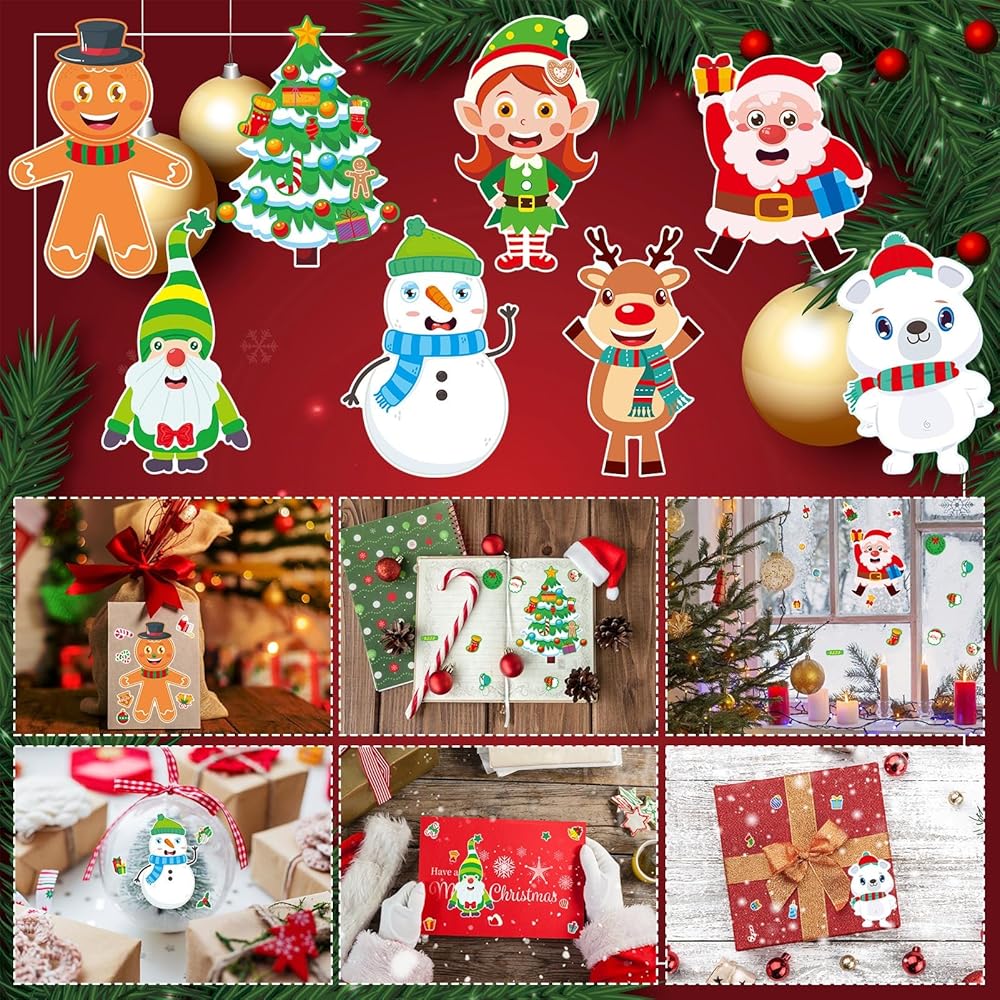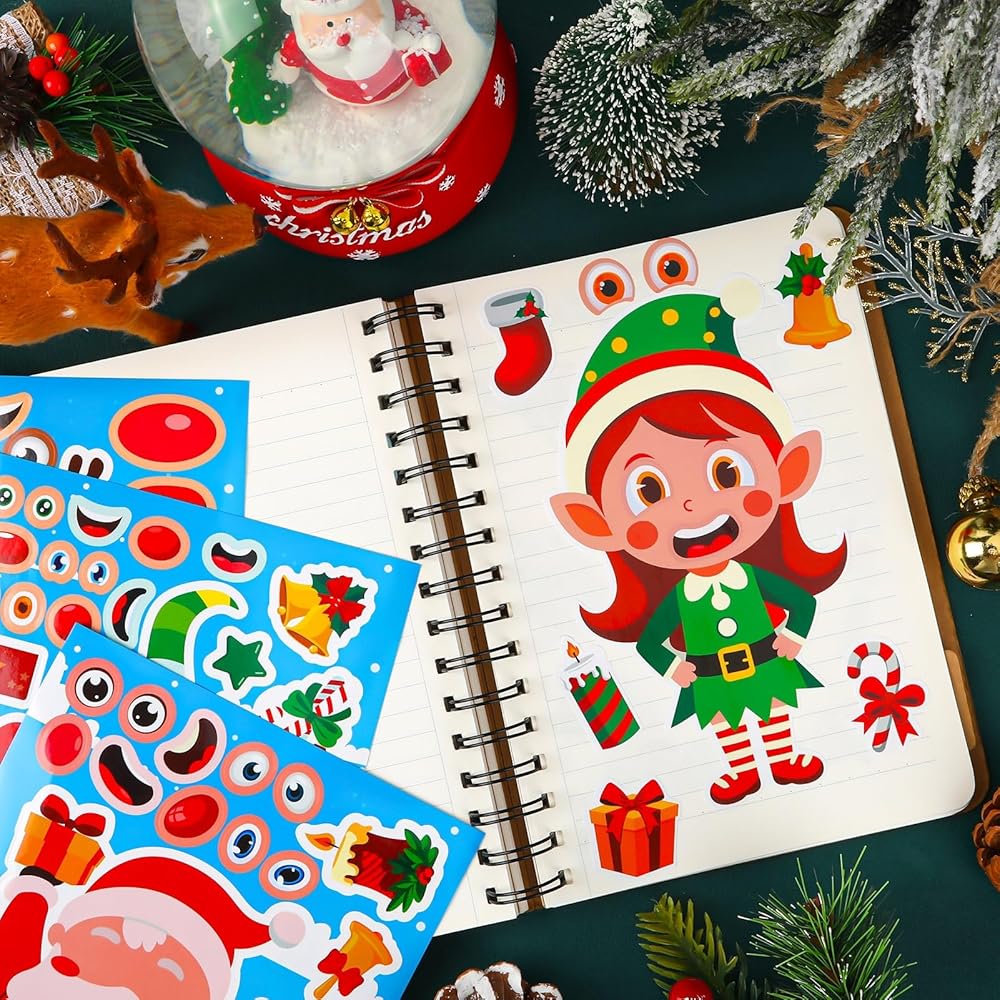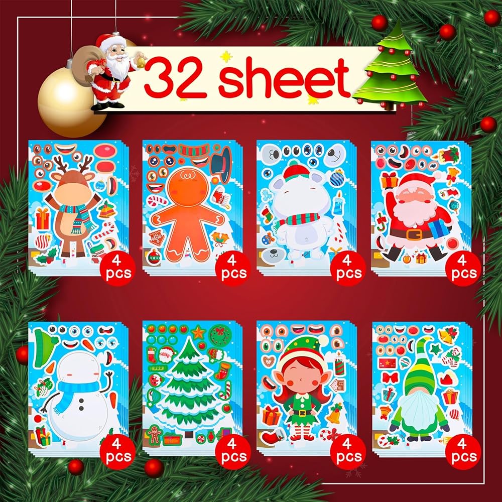 NOVWANG 32 ورقة عيد الميلاد اصنع ملصق وجه للأطفال، ملصقات حرفية عيد الميلاد اصنع ملصق شخصيات عيد الميلاد الخاص بك لحقيبة ألعاب عيد الميلاد، حشوات عيد الميلاد DIY هدايا الحفلات