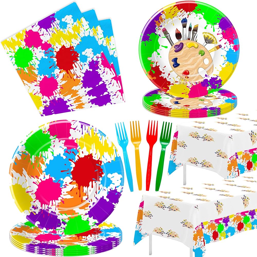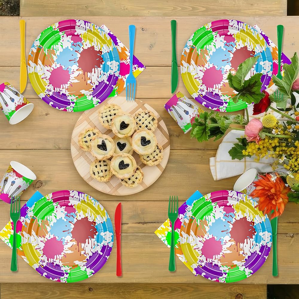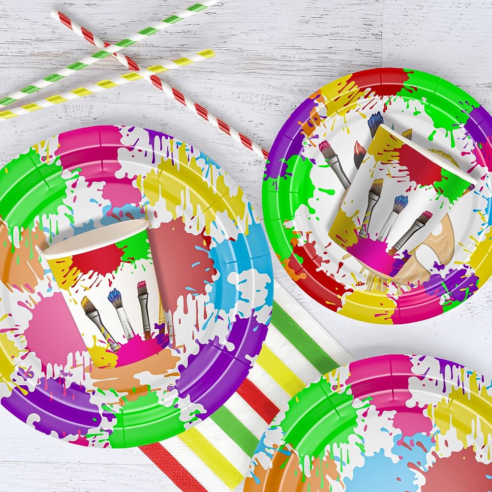 • 【Painting Party Supplies】Introducing our art paint party tableware, the perfect set for hosting a vibrant and creative celebration! The tableware features a colorful and playful art paint theme, complete with paint splatters, paintbrushes, and vibrant colors. Whether throwing a birthday party for an aspiring young artist, organizing a paint-themed event, or just looking to add an artistic touch to your gathering, this tableware set has got you covered