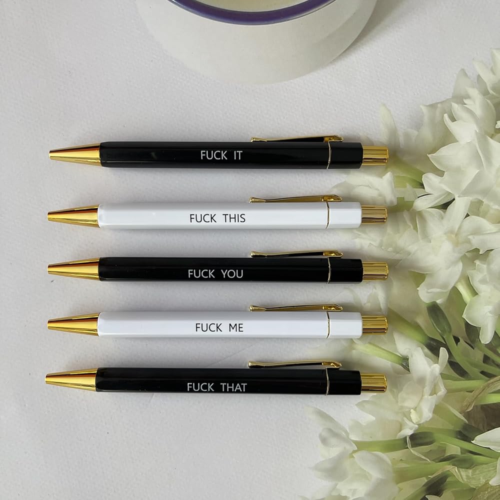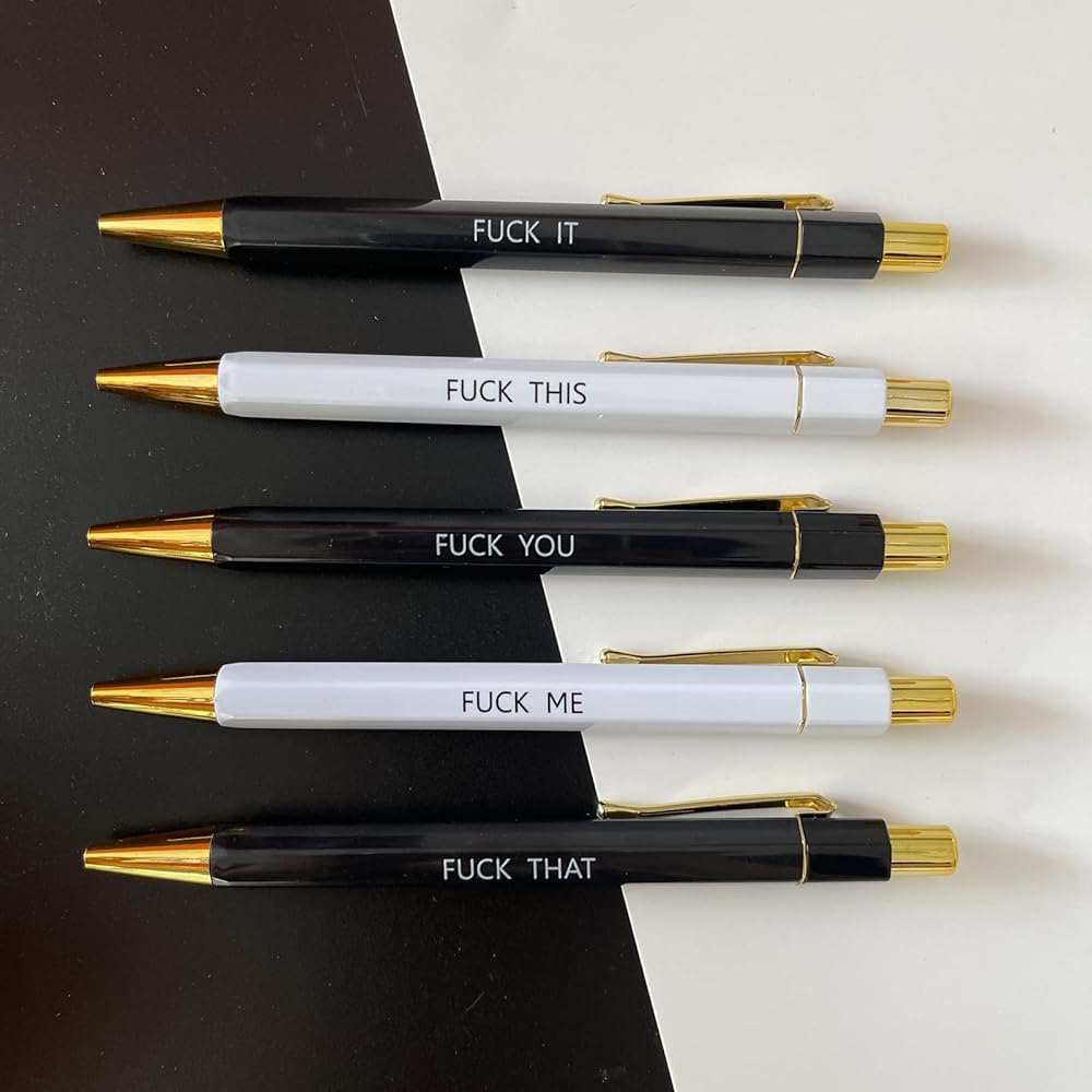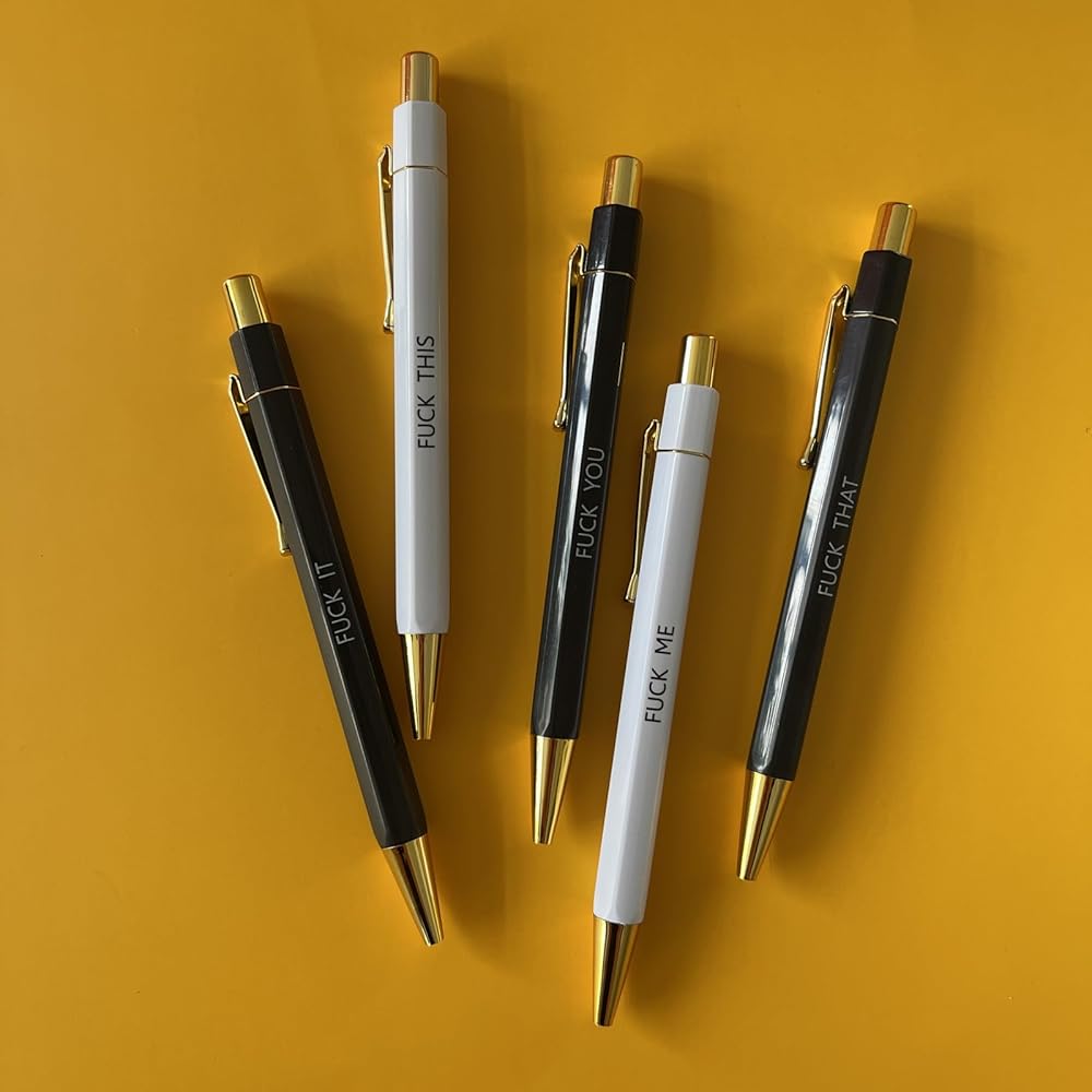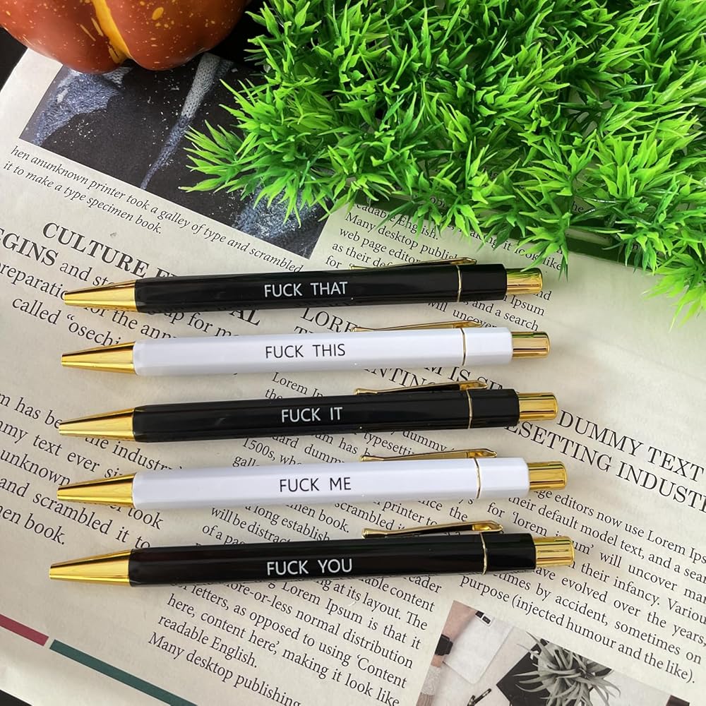 【أقلام حبر جاف F*CK】سوف تحصل على 5 أقلام مثيرة للاهتمام بأنماط مختلفة في العبوة، والتي تتم طباعتها بعبارات مختلفة. ما يكفي من اللوازم المكتبية المثيرة للاهتمام يمكن أن تلبي احتياجاتك المكتبية اليومية. حبر أسود.