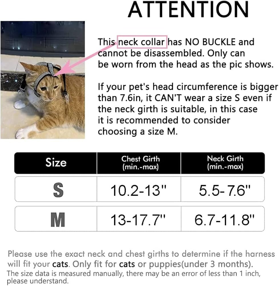 ❤【الحجم】مثالي للكلاب والقطط الصغيرة والمتوسطة الحجم. يرجى قياس صدر ورقبة قطتك بعناية قبل الطلب. إذا كان القياس بين مقاسين، فيرجى اختيار المقاس الأكبر.