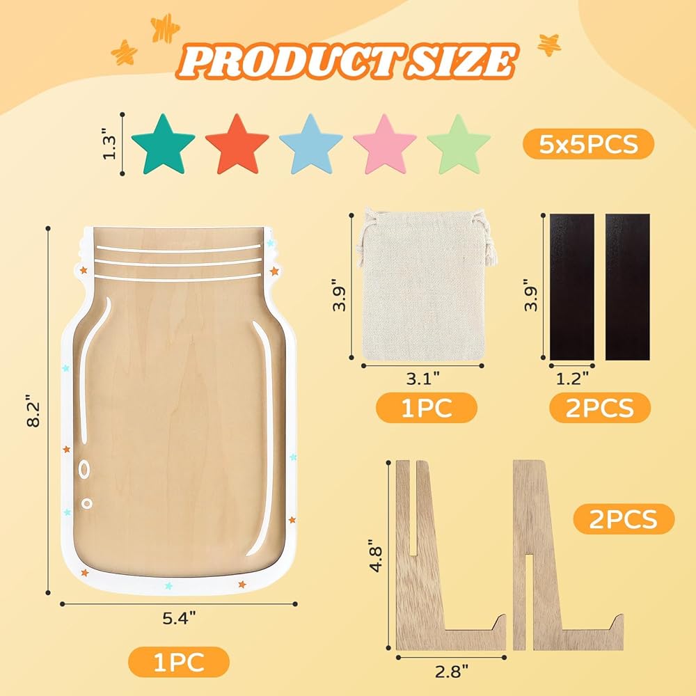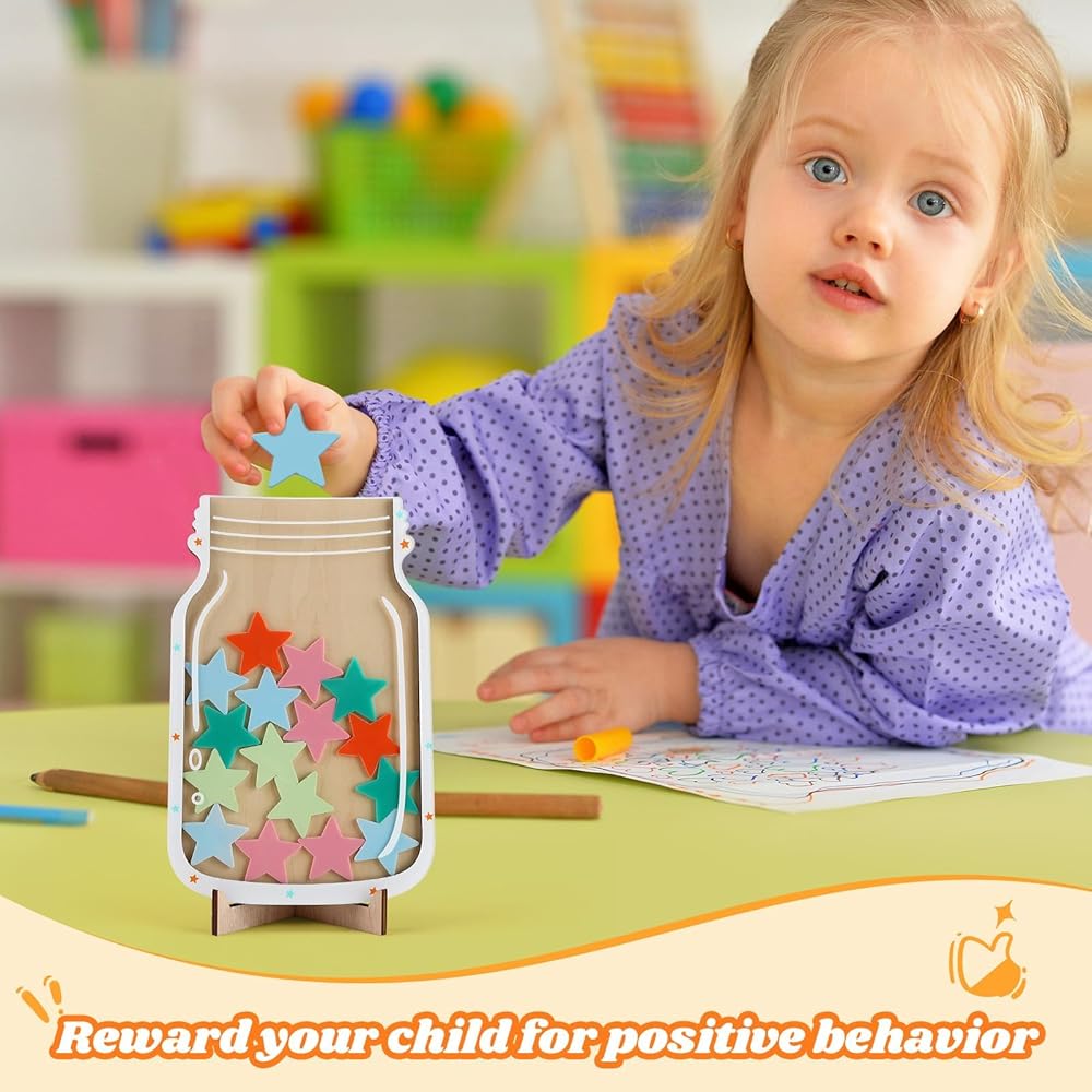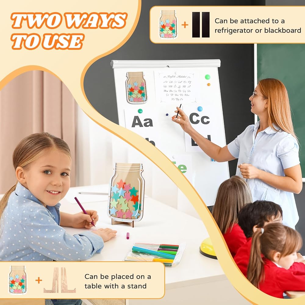 【مجموعة برطمانات مكافآت النجوم】تحتوي العبوة على برطمان مكافأة واحد، 5 × 5 نجوم، حامل برطمان واحد ومغناطيسين. يمكنك وضع وعاء المكافأة الإيجابية على سطح المكتب، وربطه مغناطيسيًا بالثلاجة أو السبورة.