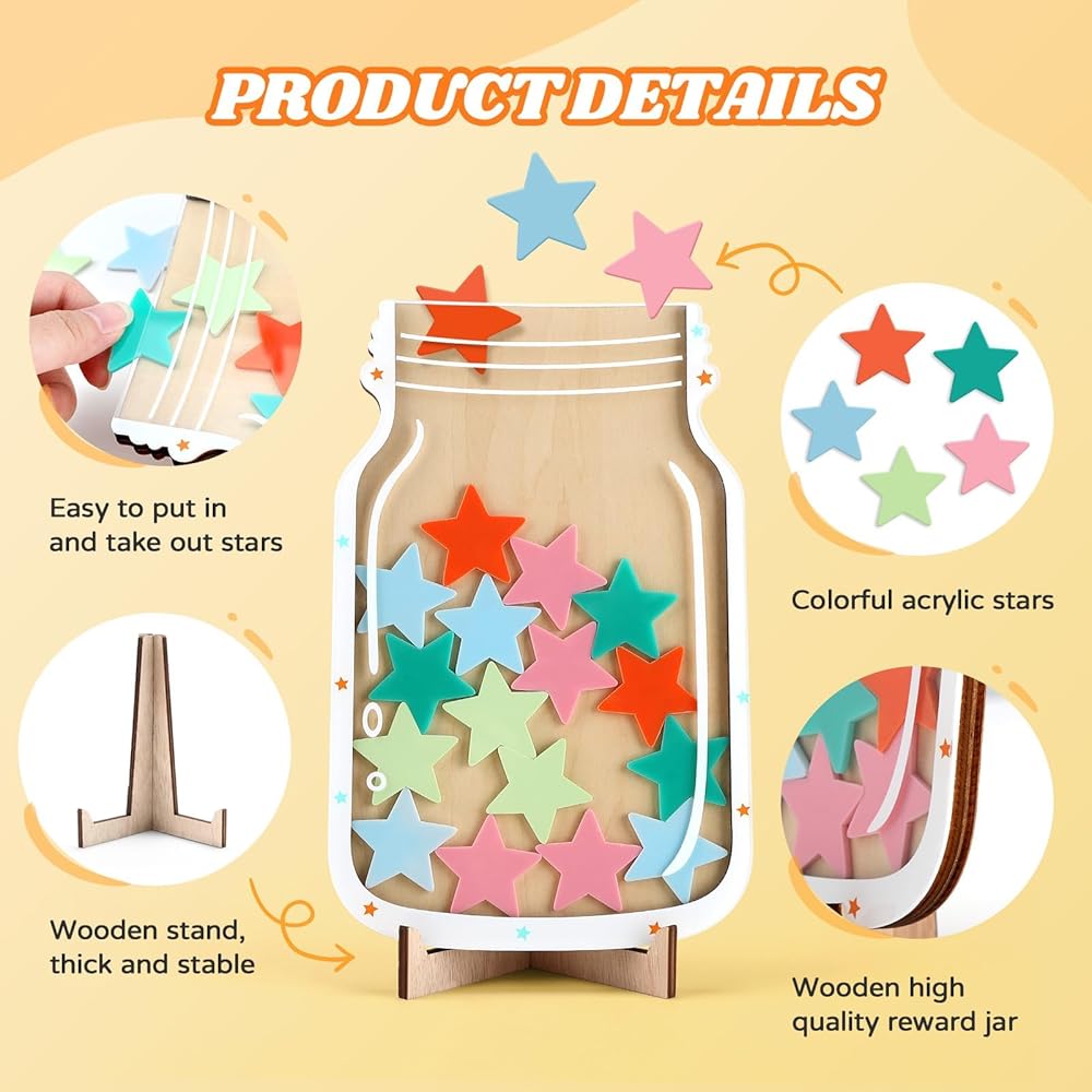【مواد عالية الجودة】إن وعاء مكافأة الأطفال مصنوع من الخشب والأكريليك، وهو متين وليس من السهل ارتداؤه أو كسره؛ النجوم الملونة مصنوعة من الأكريليك بسطح أملس وآمن للأطفال. بالإضافة إلى ذلك، فإن مظهرها اللطيف والمثير للاهتمام يجذب الأطفال للغاية للمشاركة بشكل أكبر في الحصول على المكافآت وإظهار تقدمهم.