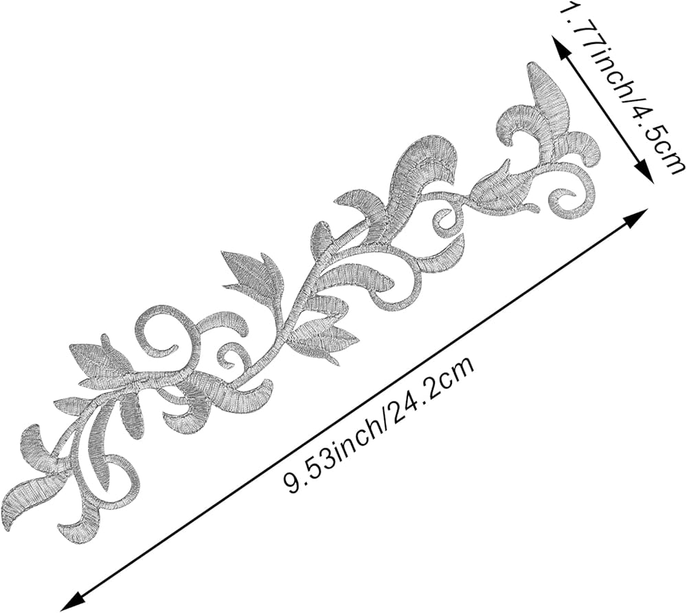 • 【MATERIAL AND DESIGN】- Fully embroidered in metallic thread, metallic thread with an exquisite scrolled vine border lace applique. Each patch features a captivating long swirl.
