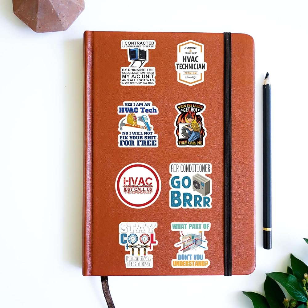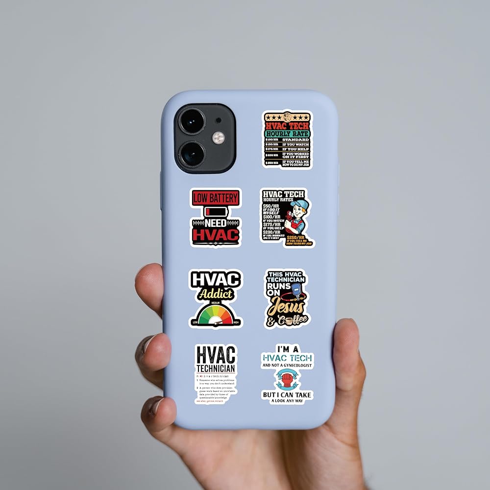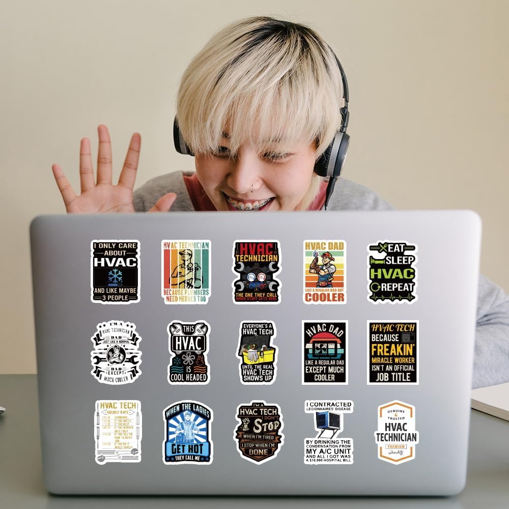 مجموعة 56 قطعة من ملصقات HVAC، ملصقات جمالية مقاومة للماء من الفينيل لزجاجة المياه، الكمبيوتر المحمول، الهاتف، لوح التزلج، سجل القصاصات، ممتص الصدمات للأطفال والمراهقين والبالغين من أجل ديكور مستلزمات الحفلات