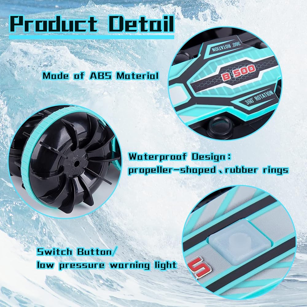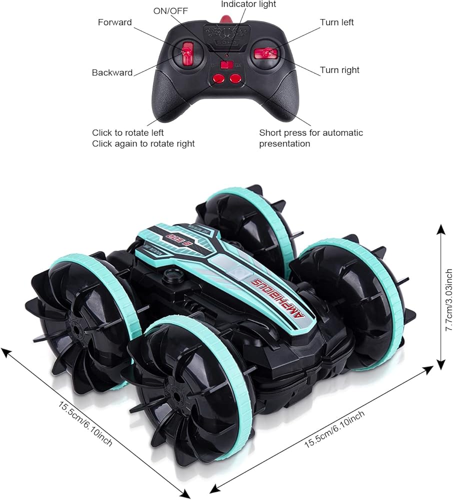 [دوران 360 درجة] يمكن لهذه السيارة تحقيق وظائف مثل الأمام، والخلف، والانعطاف الأيسر، والانعطاف الأيمن، والدوران 360 درجة. إنها مناسبة للطرق الوعرة ومناسبة لجميع التضاريس. لعبة السيارة البرمائية تعمل بشكل جيد على الأرض والماء! على سبيل المثال: الطين والبرك وحمامات السباحة والبحيرات والشواطئ والبحار والثلوج والمراعي وما إلى ذلك. يمكن للأطفال أيضًا استخدام مخيلتهم في طريقة لعب جديدة غير متوقعة.