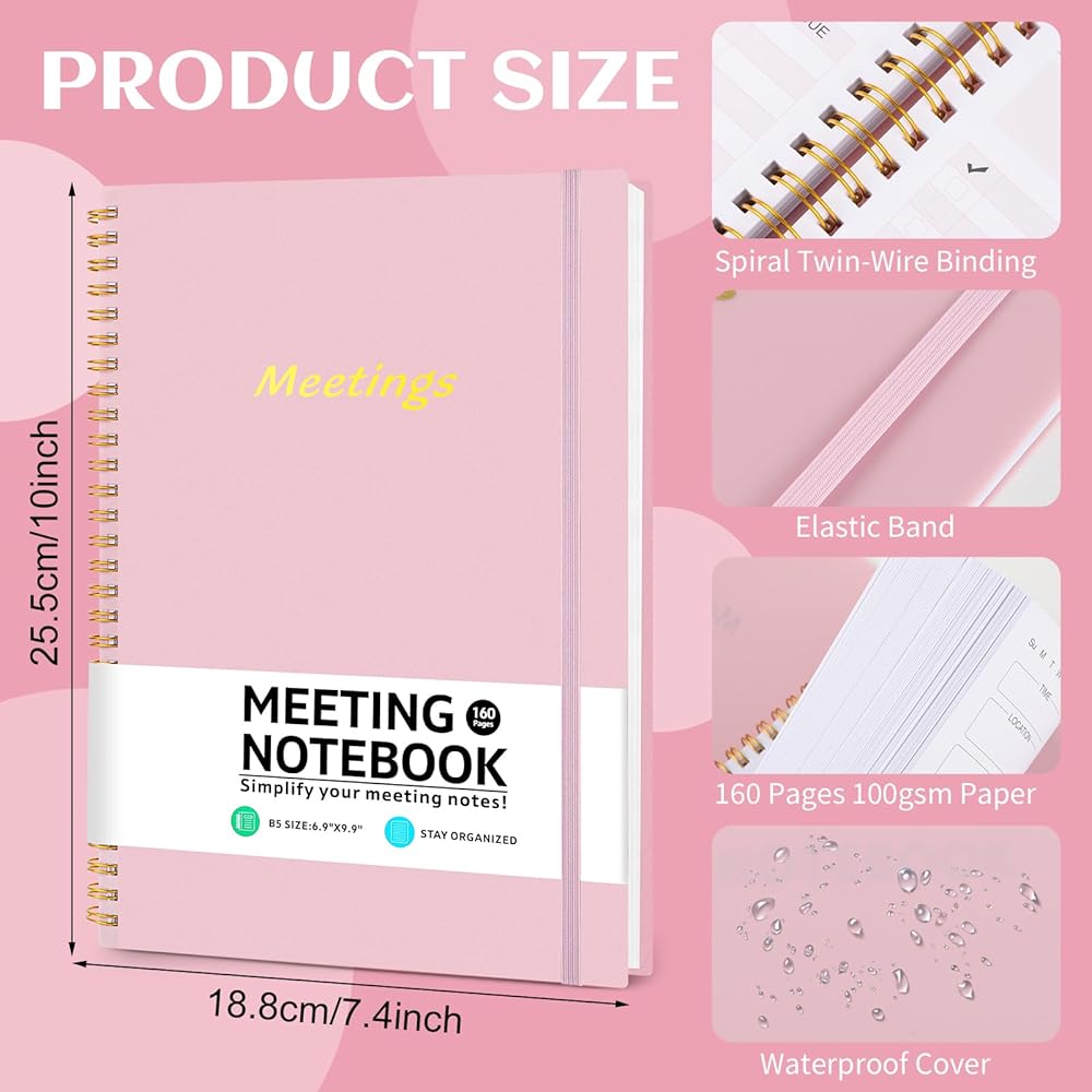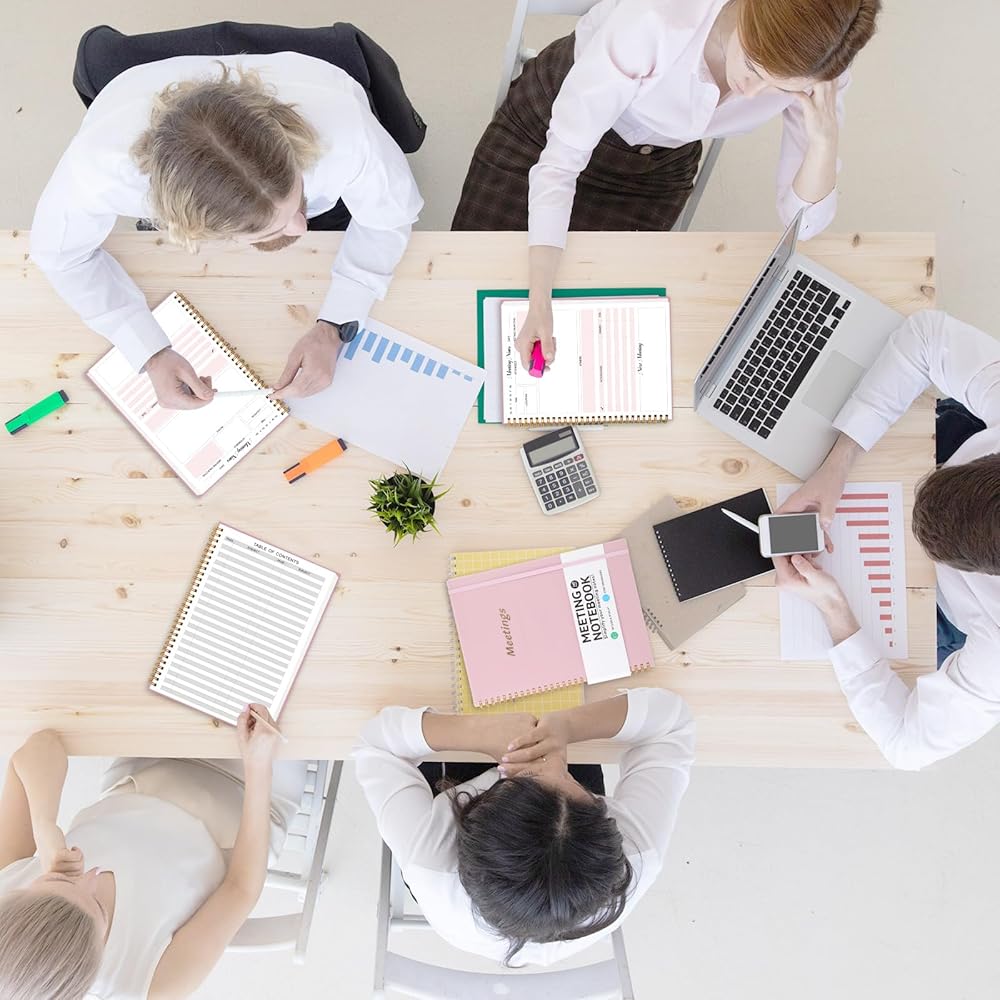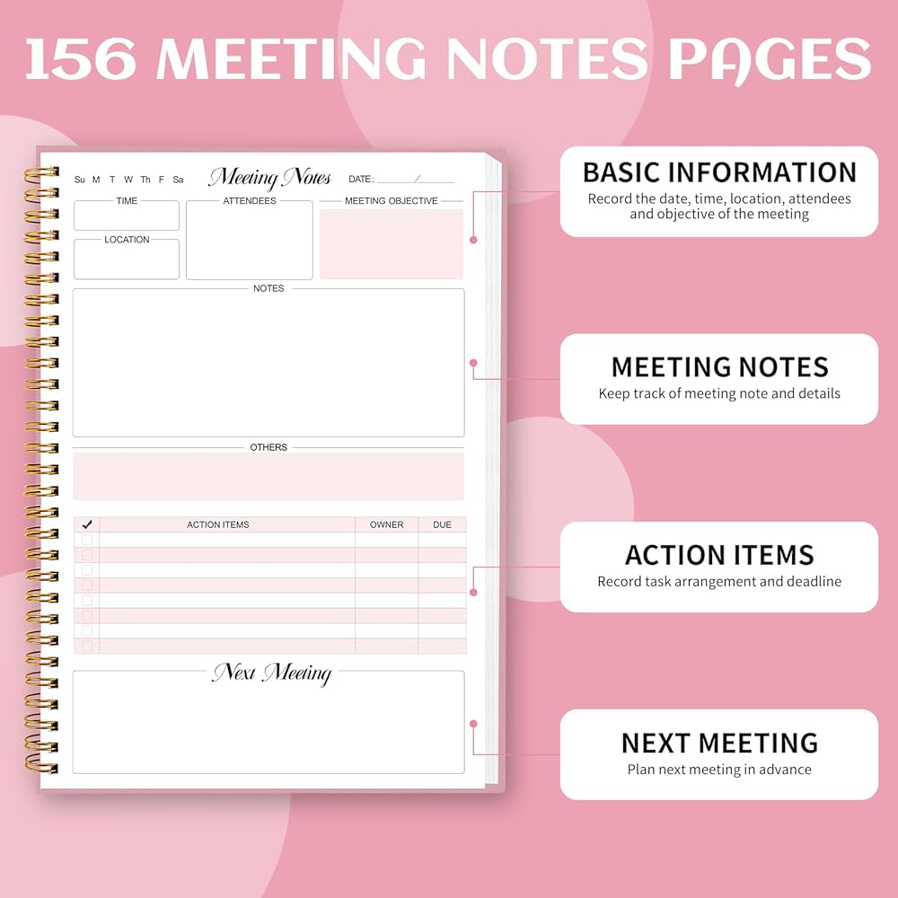 【مساحة كافية لكل اجتماع】يبلغ مقاس دفتر ملاحظات الاجتماعات للعمل 6.9*9.9 بوصة، سهل الحمل، يمكنك تدوين الملاحظات في أي وقت وفي أي مكان، ويمكنه عقد ما يصل إلى 156 اجتماعًا، مناسب للاستخدام اليومي