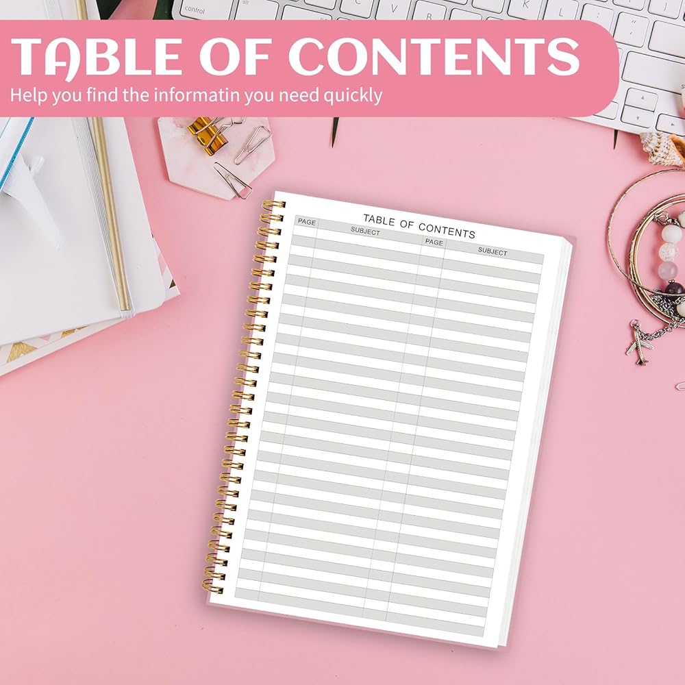 【تصميم عملي】يستخدم دفتر منظم العمل غطاء بولي بروبيلين مقاوم للماء لحماية الصفحات الداخلية من الاتساخ أو التلف، ويأتي مع حزام. التصميم الملولب يجعل من السهل قلب الصفحات أو تمزيقها، ولن يتغلغل الورق بوزن 100 جرام، مما يوفر تجربة كتابة جيدة