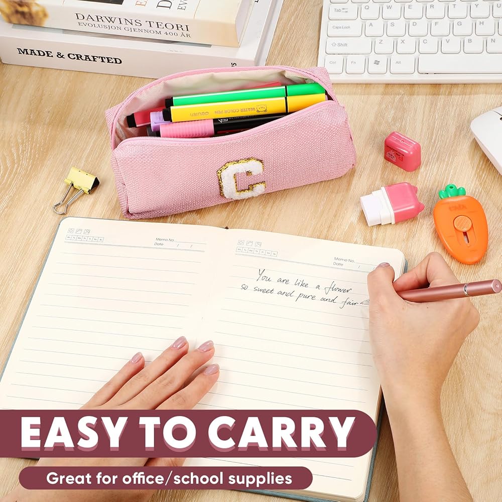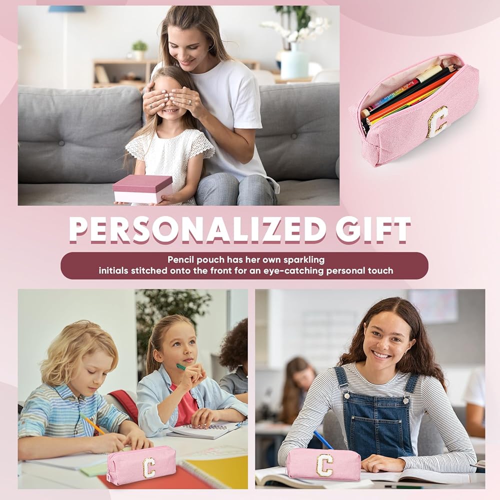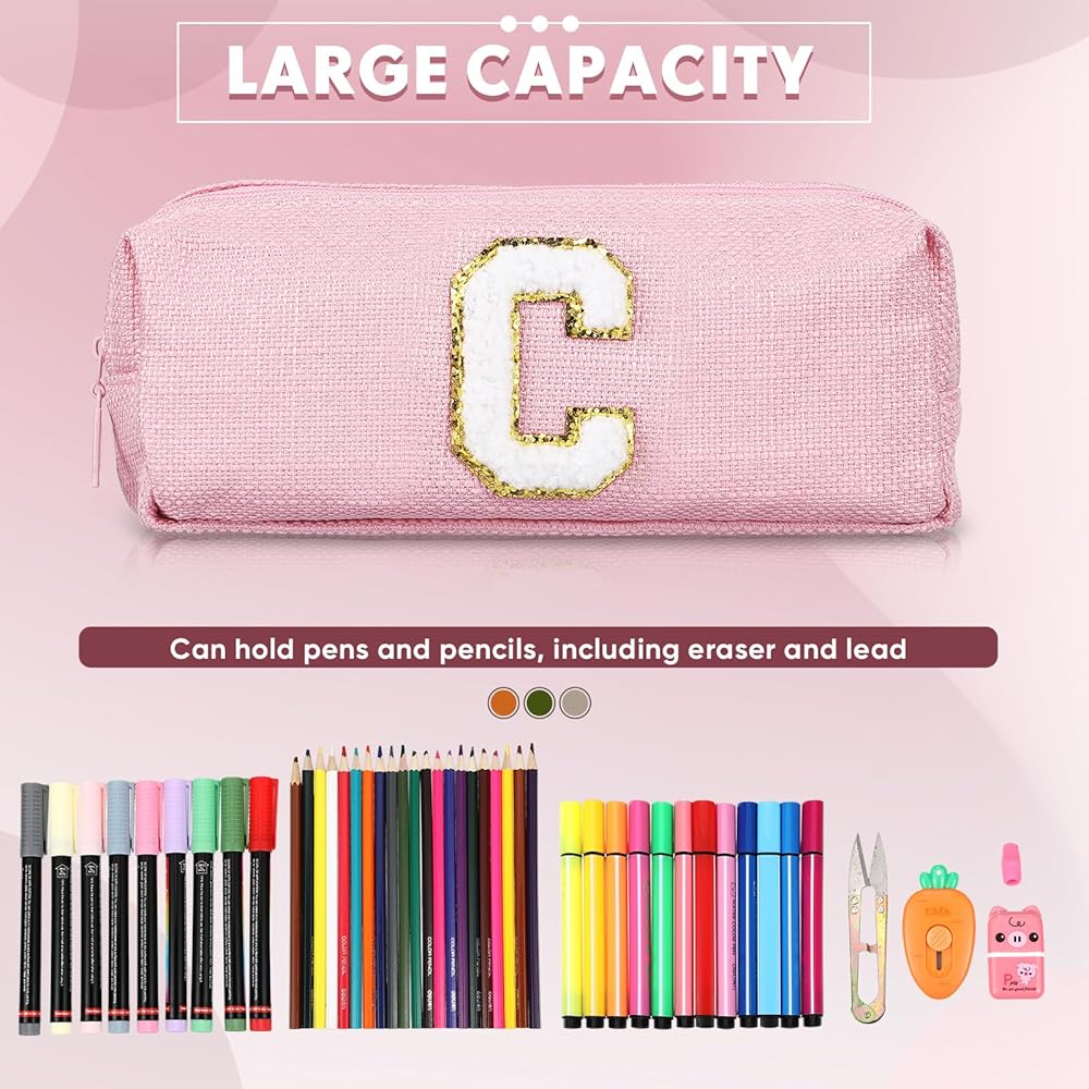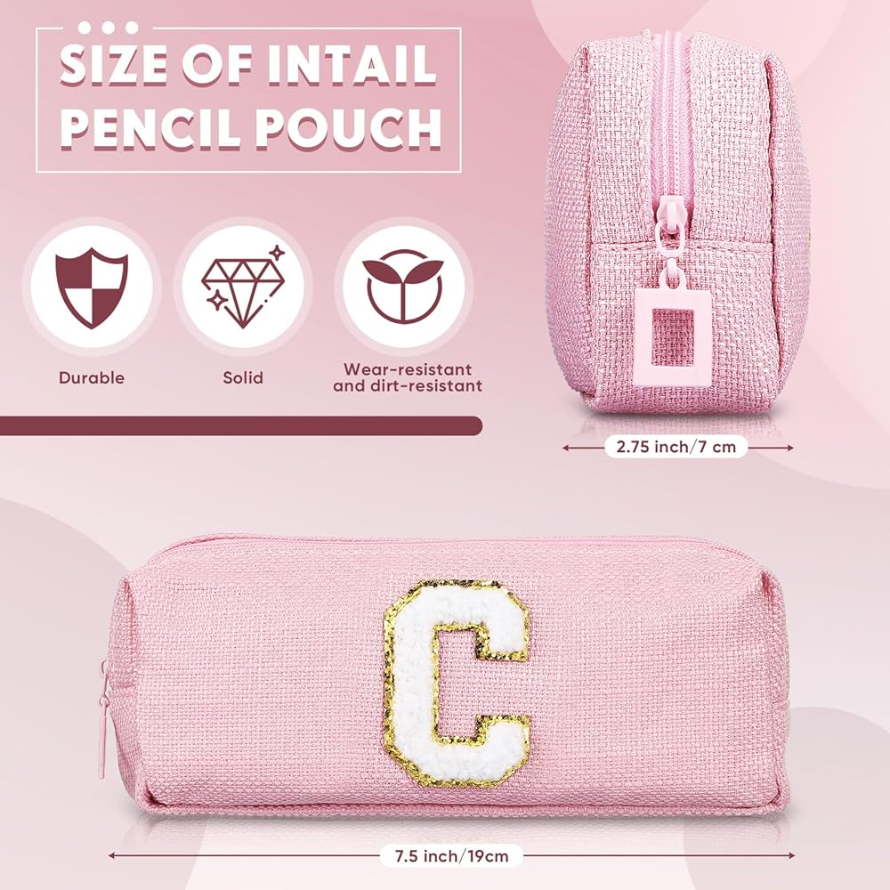 Stand out with makeup bag with letter featuring expressive chenille letters for personalization. Its vivid pink hues and individualized design make it a practical yet stylish accessory. Made to emphasize your individuality, this pouch is not only suitable for your personal use but also makes a remarkable gift. It effortlessly combines functionality with style that will create lasting impressions with every use