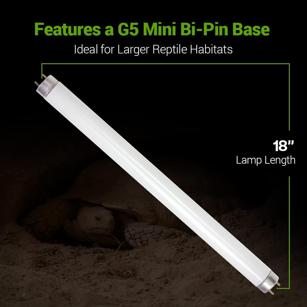 أداء عالي. سهل التركيب بقاعدة G13 ثنائية الدبوس، أنبوب الفلورسنت 18 وات للزواحف UVB 10.0 يوفر مخرجات UVB وUVA عالية مع عدم وجود مخرج UVC ضار. احتفظ دائمًا بالمصباح الخاص بك على بعد 15 سم على الأقل من الزواحف.