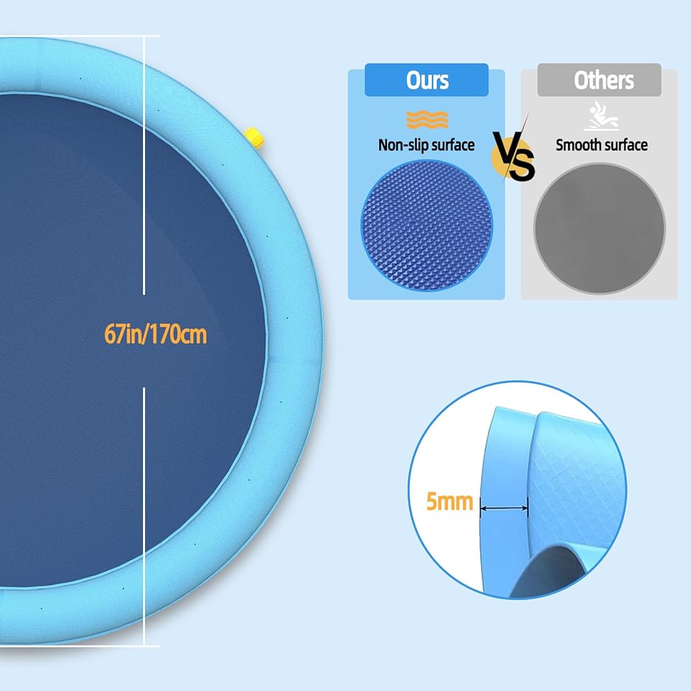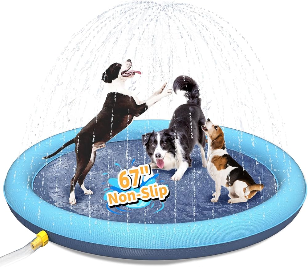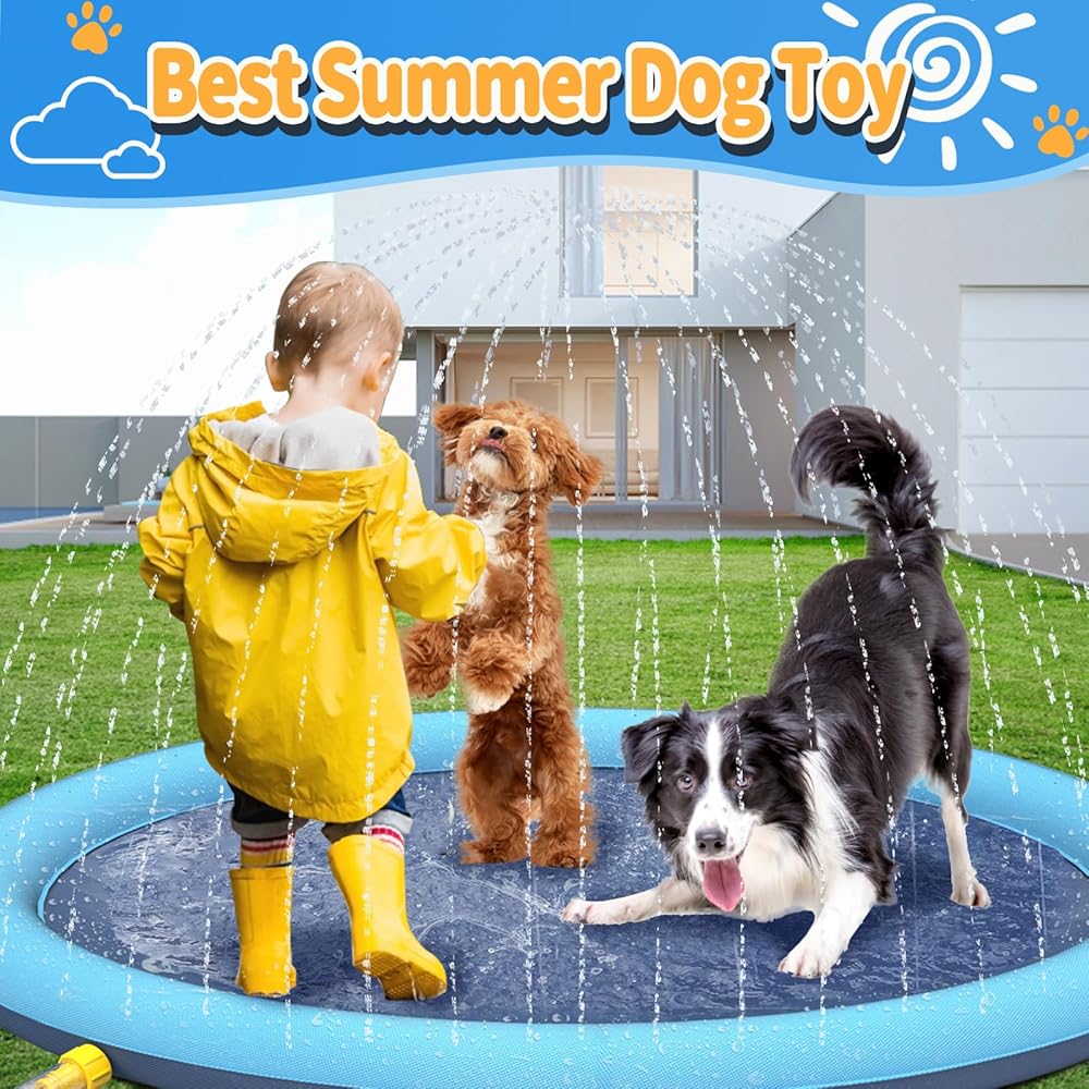 - Splash Pad for Dogs, 59in Anti-Slip 0.55mm Thickened Dog Pool Splash Sprinkler Pad, Dog Water Summer Toys Outdoor