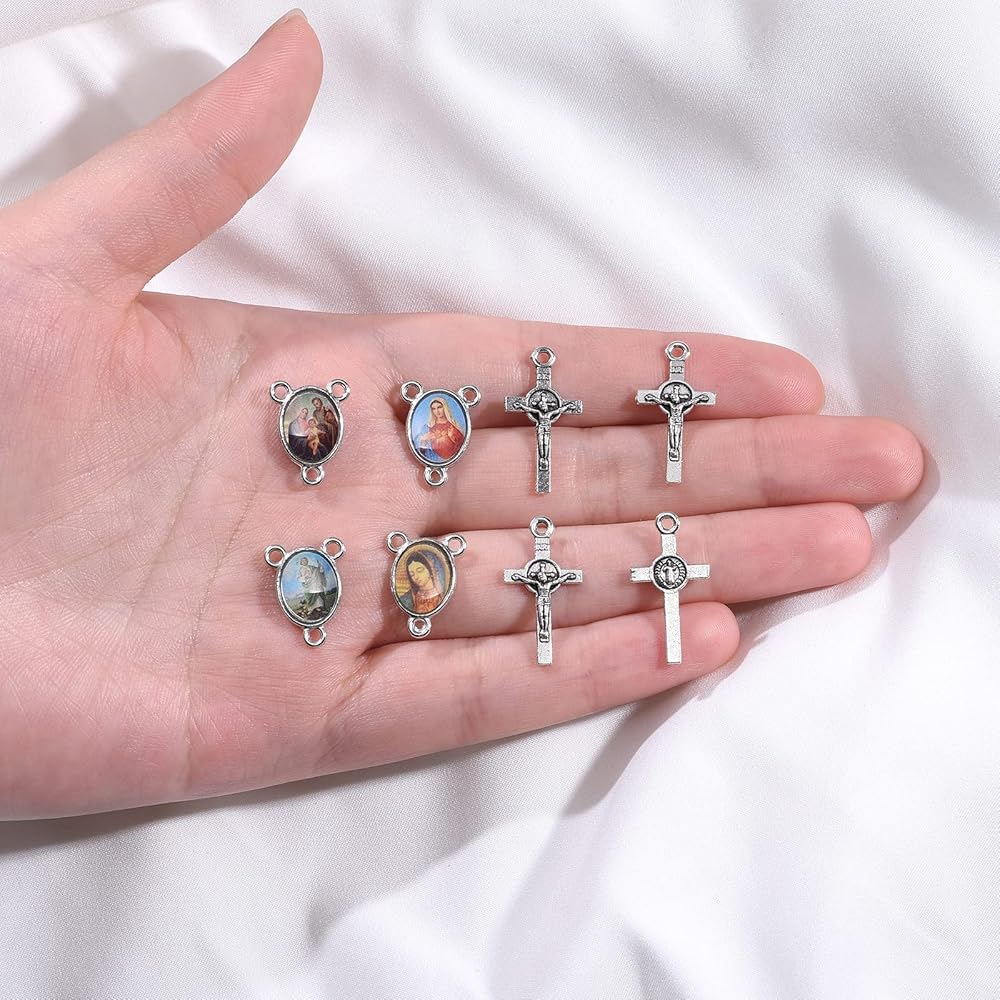 Wide applications: Rosary centerpiece connector and cross pendants or other pendantscreate a well combination to make rosary bead necklaces or bracelets. These cross pendants charms with special meaning are ideal for community embellishments, religion token ornaments, crafts supplies and jewelry making accessories. Perfect decoration for Christmas, baptism, Easter.