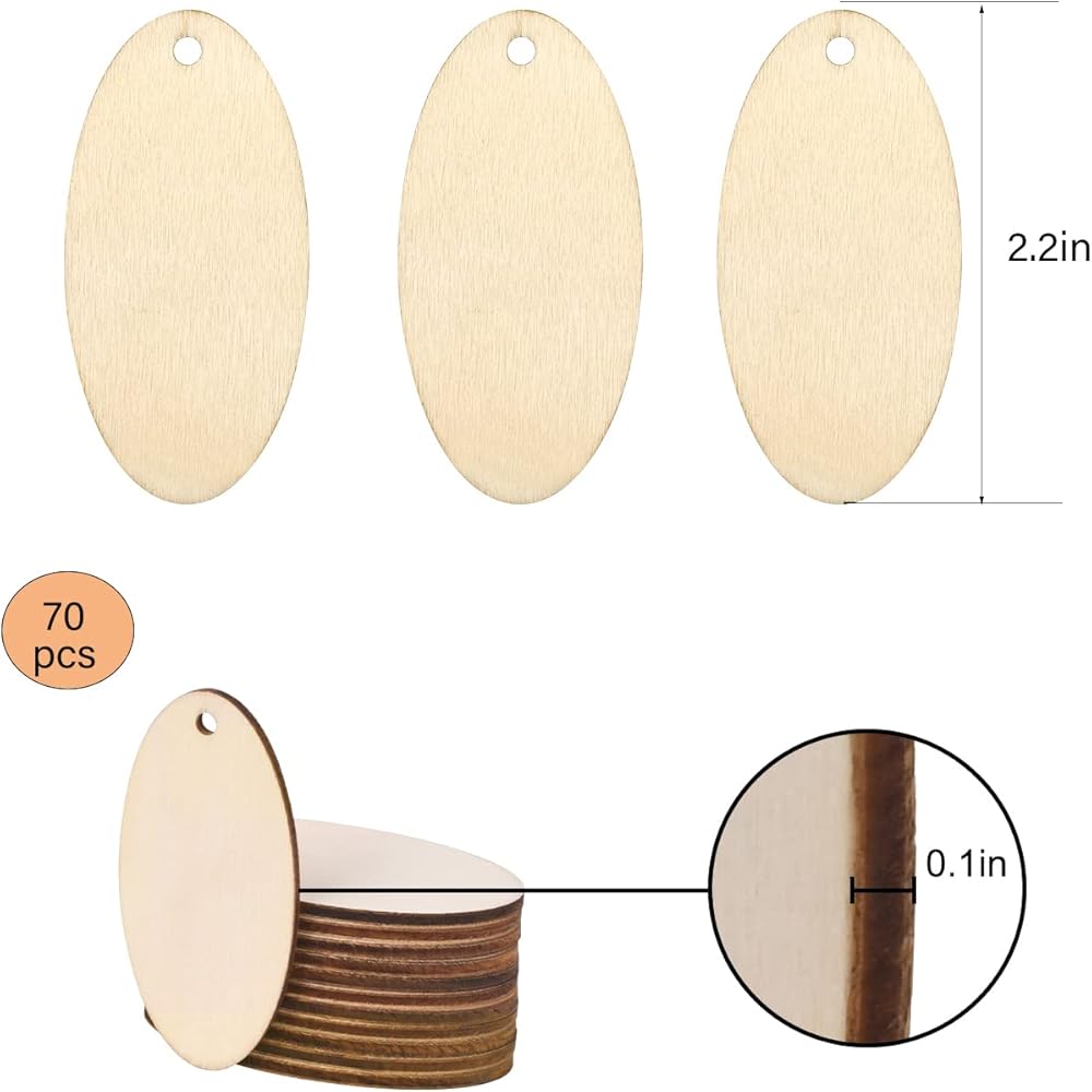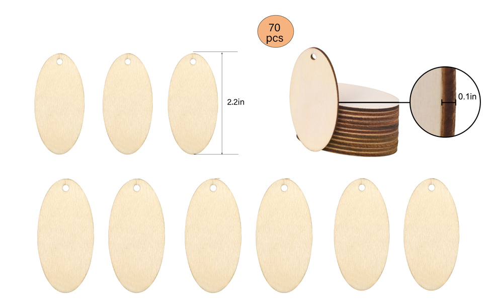70 قطعة من القرط الخشبي البيضاوي غير المكتمل، شرائح خشبية بيضاوية طبيعية ريفية خشبية فارغة أقراط قلادة للمجوهرات شكل بيضاوي الحرف اليدوية الزفاف المركزية عيد الميلاد