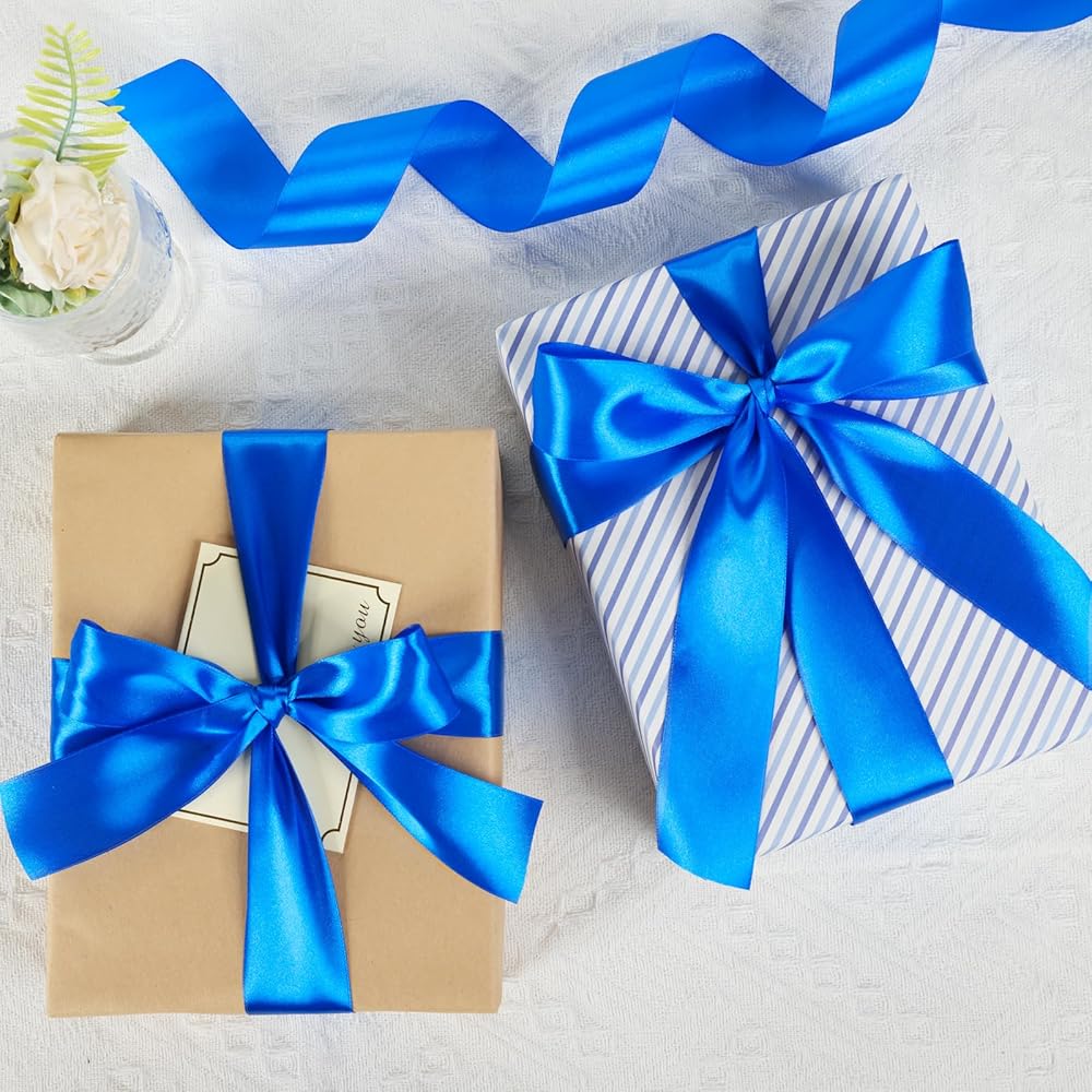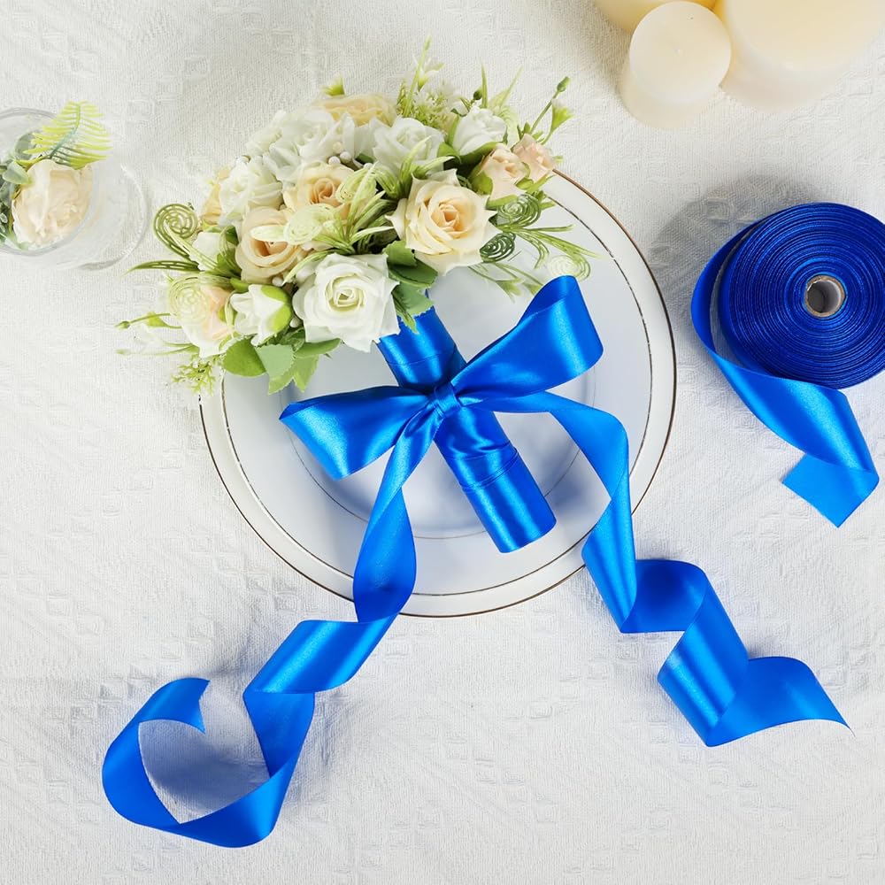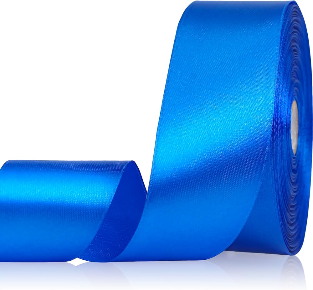 نسيج عالي الجودة: هذا الشريط عالي الجودة ذو الجانب الواحد مصنوع من ألياف البوليستر بنسبة 100%، مع سطح حريري ناعم ولامع، متين ومرن. يبلغ عرضه 3.81 سم وطوله 50 ياردة، مما يوفر طولًا واسعًا لاستخدامات متعددة