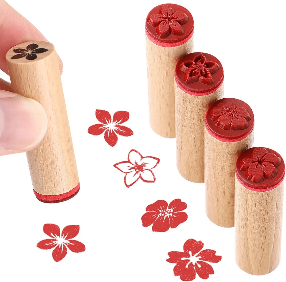 VICASKY 4 قطعة ختم مطاطي خشبي مستدير نمط الأزهار ختم مطاطي ختم مطاطي خشبي لسكرابوكينغ وبطاقة الحرف اليدوية ذاتية الصنع
