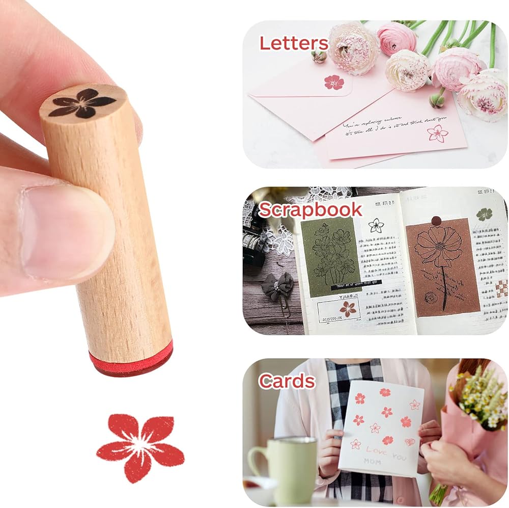 - يمكنك استخدام الطوابع المطاطية الخشبية للحرف اليدوية والمخططات ومجلات السفر وسجلات القصاصات والمذكرات وألبومات الصور والرسائل والكتب والتقويمات والبطاقات