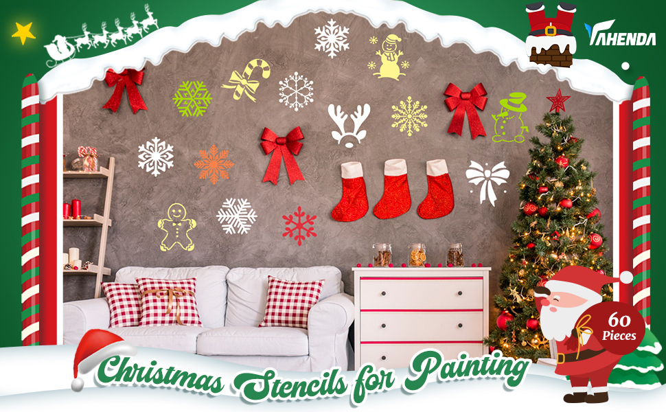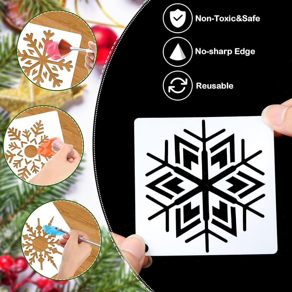 سهلة الاستخدام: كل ما عليك فعله هو وضع استنسل رسم عيد الميلاد على سطح مستوٍ ونظيف، واستخدام فرش الرسم وطلاءات الرش وأقلام الرصاص وأقلام التحديد وأقلام التلوين والطباشير (غير متضمنة) وغيرها من الأدوات لتصميم عملك الفني الخاص، بدون تعقيد مهارات الرسم المطلوبة، ومناسبة للمبتدئين والأطفال