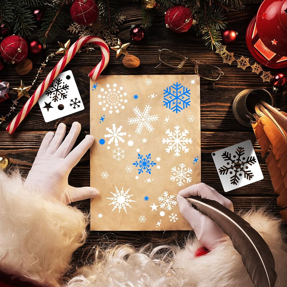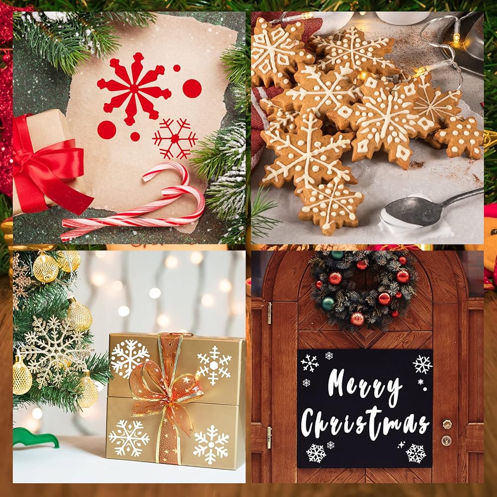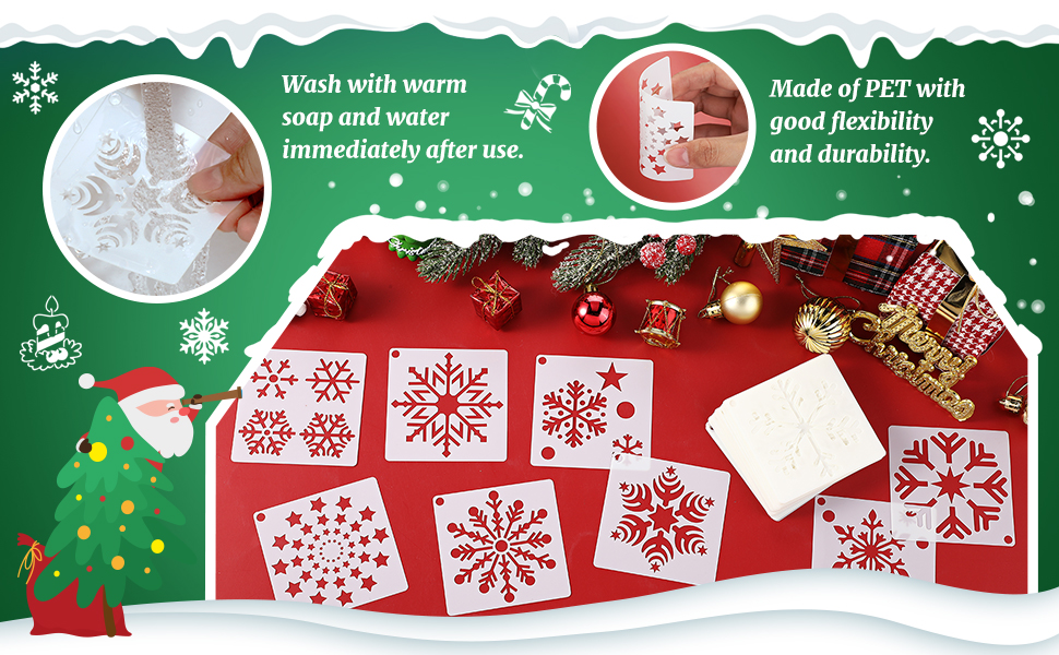 تصميمات دقيقة: تم تصميم استنسل قوالب عيد الميلاد هذه بأنواع مختلفة من أنماط عيد الميلاد الجميلة، المليئة بأجواء عيد الميلاد، ويمكن أن تخلق جوًا مبهجًا وجميلاً لمنزلك؛ يمكنك استخدامها معًا أو بشكل منفصل، مما يجعل حرفاتك ليست منفردة أو باهتة بعد الآن