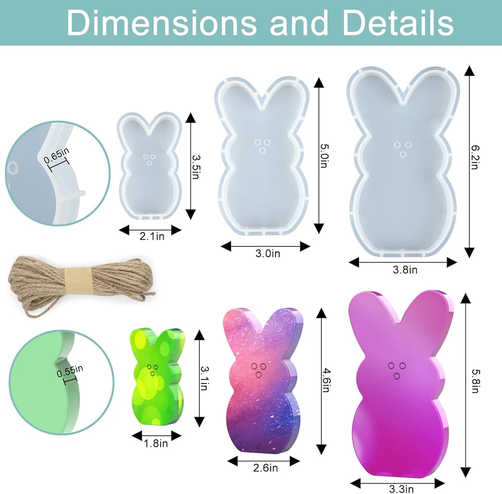 • Package include - You will get 3pcs bunny resin molds, 10m jute rope. The bunny molds are with 3 different sizes to meet your DIY craft needs, the big one size is 6.2inch length, 3.8inch width, the middle one size is 5inch length, 3inch width, the small one size is 3.5inch length, 2.1inch width. Perfect to DIY unique Easter bunny