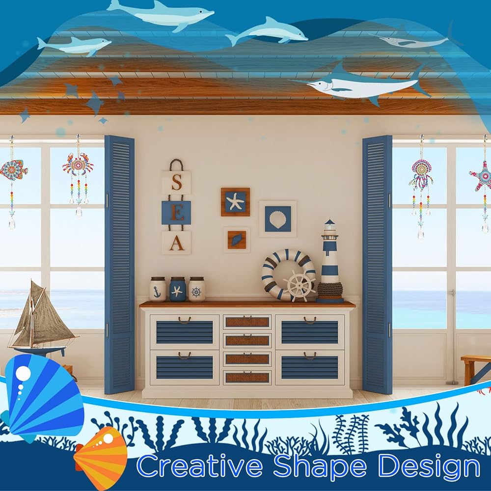 Ocean Animal Theme: the window art kit adopts ocean creature theme design, designed in 4 different shapes, including crabs, jellyfish, tropical fish and starfish, cute and vivid, ideal for decorating your home