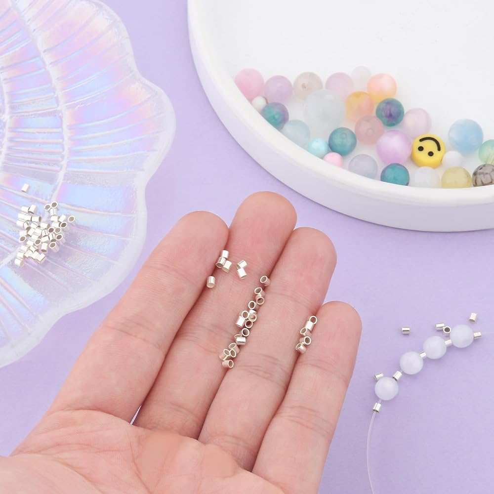 1.Package Include: 40 pcs sterling silver crimp beads in one bag, 2*2mm crimp tube for Jewelry making.