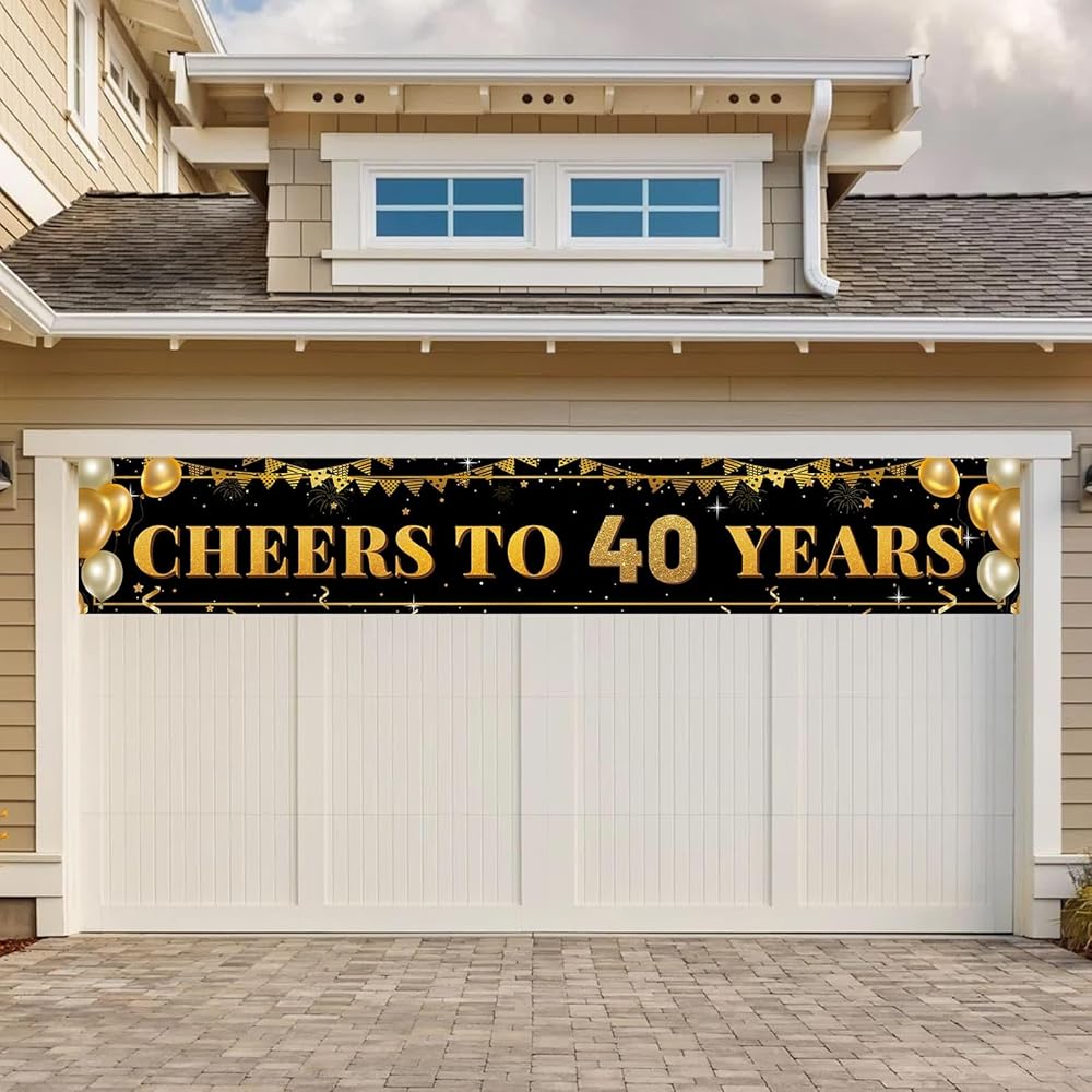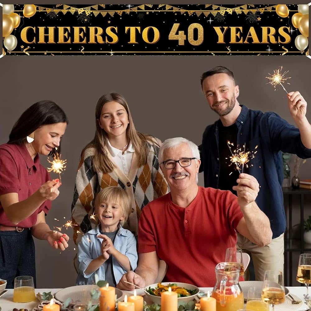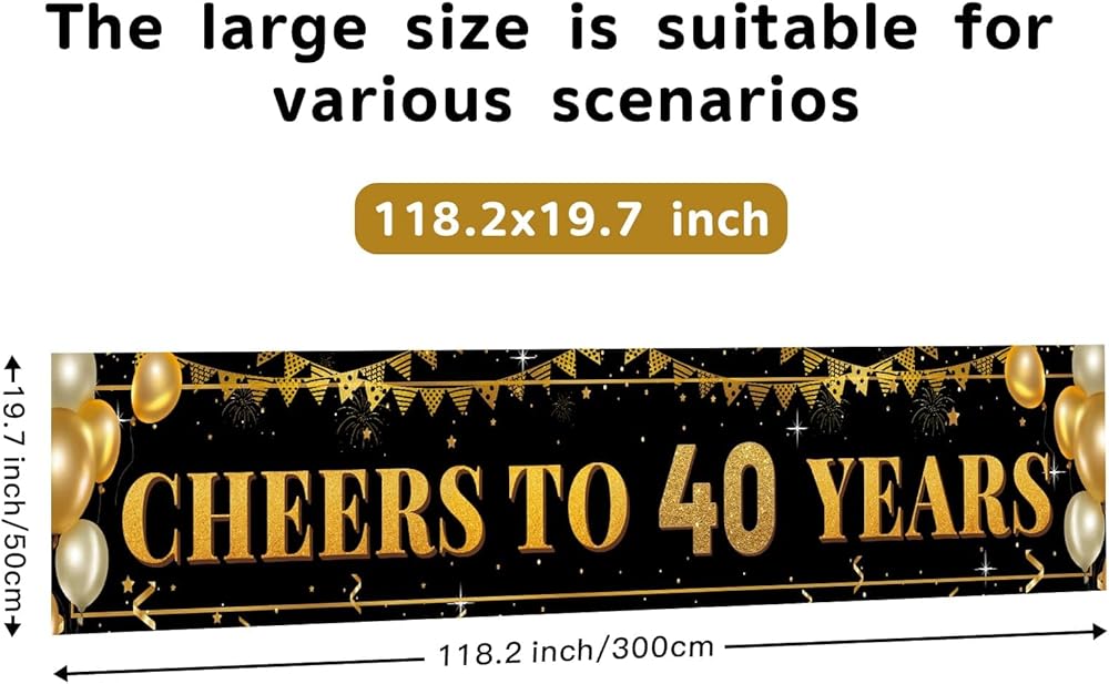 لافتة كبيرة باللون الأسود الذهبي لعيد الميلاد الأربعين مقاس 118 بوصة × 20 بوصة - ديكورات حفلات عيد الميلاد الأربعين للاستخدام الداخلي والخارجي، لافتة ساحة لاحتفالات عيد الميلاد الأربعين، مثالية للنساء والرجال