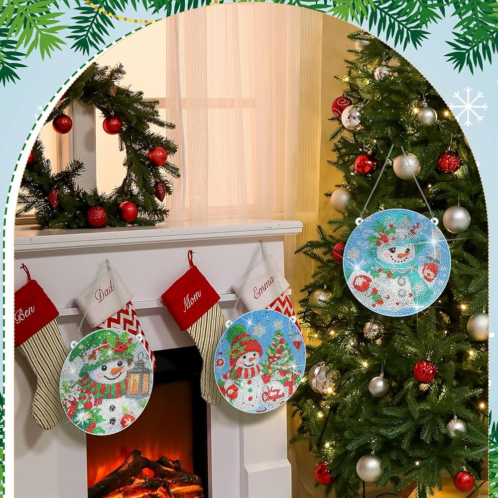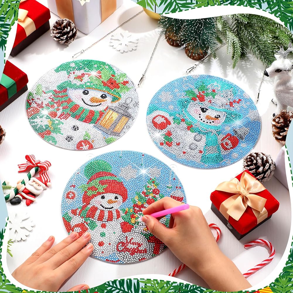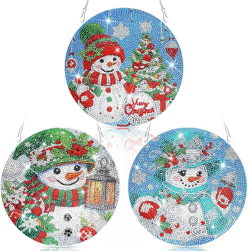 thyle 3 مجموعة عيد الميلاد ثلج DIY عيد الميلاد الماس الفن شنقا زخرفة عيد الميلاد الماس الفن شنقا اللوحة زخرفة الاكريليك الماس قلادة لوحة اللوحة عدة للبالغين