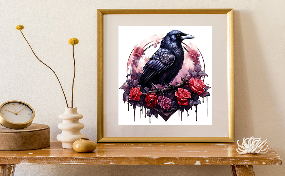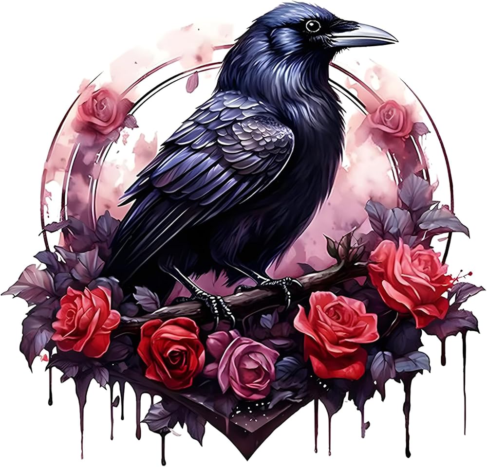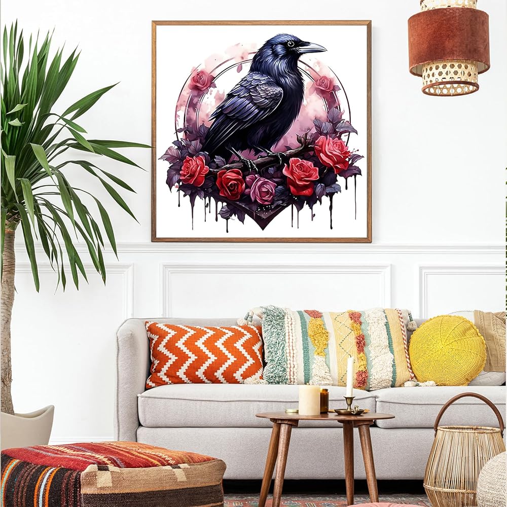 clakinla هالوين الماس الفن مجموعات الرسم للبالغين، 5d الغراب الماس الفن مجموعات الرسم للمبتدئين، diy شوكة روز صورة الطلاء مع الحفر الكامل الماس النقاط لديكور المنزل 12x12 بوصة