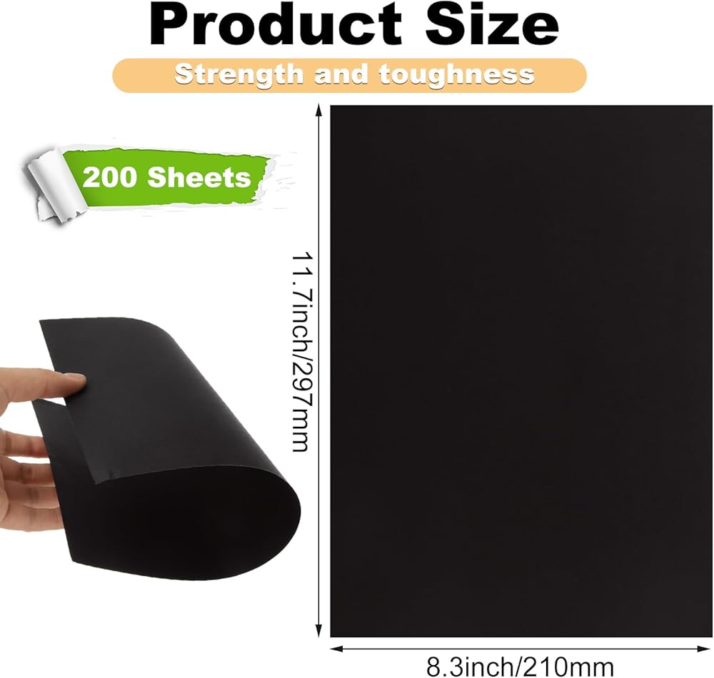 تشمل العبوة: تحتوي المجموعة على 200 ورقة من البطاقات السوداء مقاس 8.5 × 11، مقطوعة بدقة بالليزر، مع ملمس ناعم وبدون نتوءات، مثالية للبطاقات اليدوية اليدوية، خاصة لديكورات الهالوين