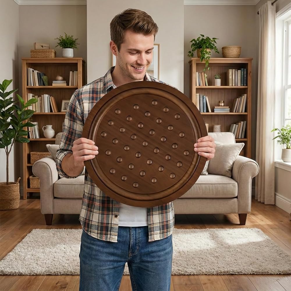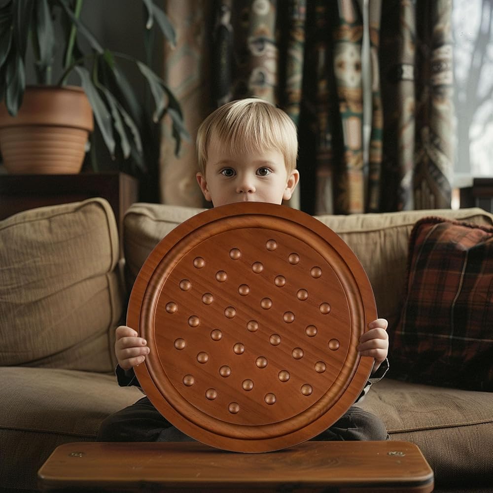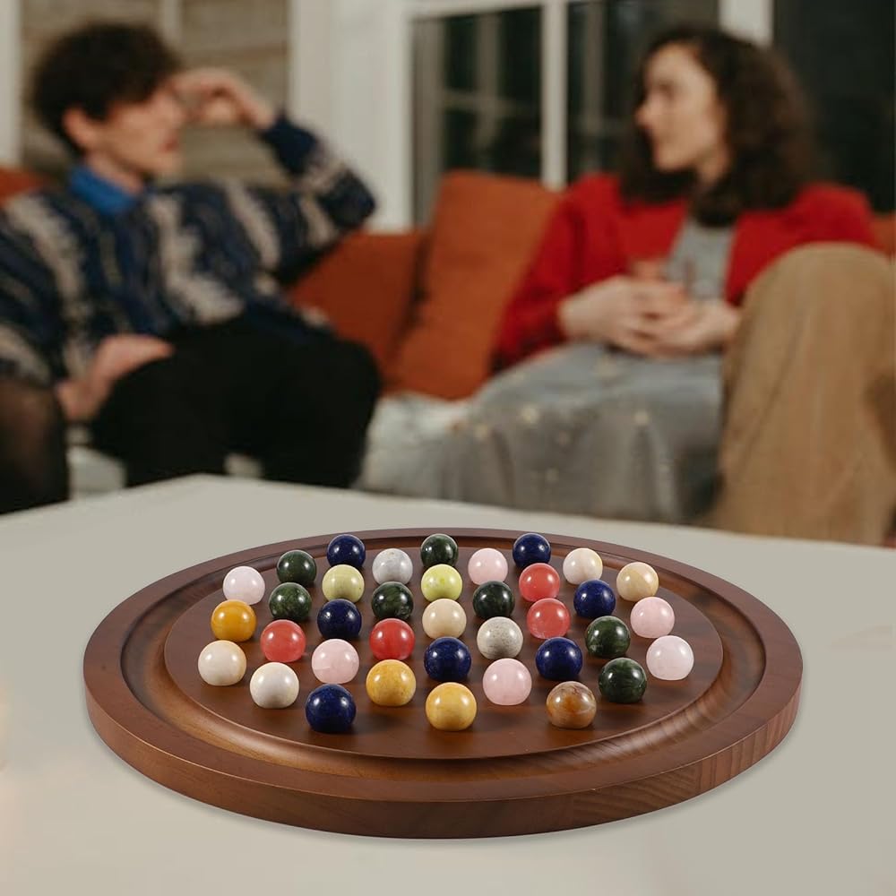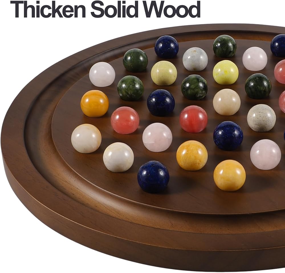 مجموعة خشبية فاخرة: هذه نسخة مطورة من لعبة سوليتير اللوحية، مع 4 أخاديد إضافية لجعل اللعبة أكثر تحديًا. يضمن اللوح الخشبي الصلب القوي استخدامًا طويل الأمد! تشتمل اللعبة على لوحة ألعاب مصممة بشكل جميل، و36 كرة رخام، وحقيبة تخزين، ودليل تعليمات، وصندوق ملون. يبلغ قطر اللوح الدائري 12.6 بوصة، ويبلغ قطر الكرات الرخامية 0.8 بوصة. تم تصميم الأخاديد الموجودة على حواف اللوحة لتخزين الرخام المحذوف!
