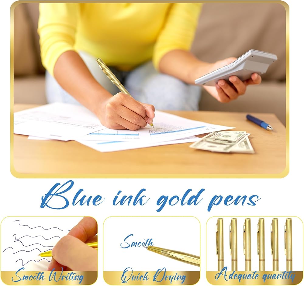 Blue ink pens: Unlike other gold pens of the same type, each of our ballpoint pens are custom-made blue refill, 1.0 mm center point is easy to write