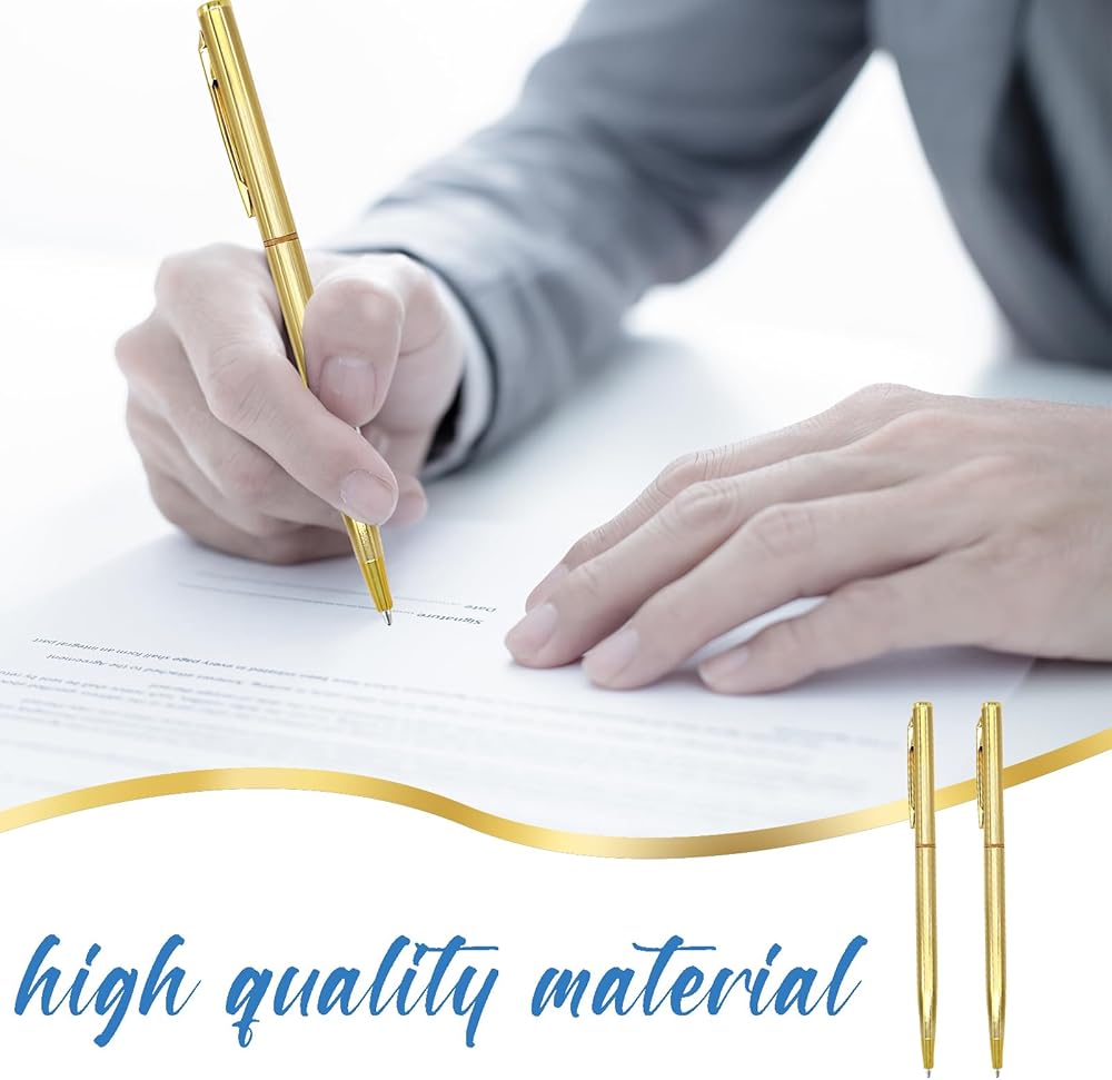 Size: The length of the gold ballpoint pen is about 5.4 inches, The pen body is slim, only 7mm; The proper size allows you to store and carry them around in your pockets and bags
