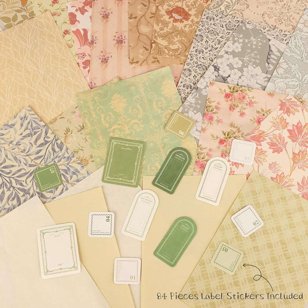 ورق عالي الجودة - مجموعة مختارة من الورق عالي الجودة مصنوع بعناية، وملمس متين، مع تصميم زهرة كلاسيكية كلاسيكية، وتشبع منخفض من درجات ألوان موراندي القديمة تضيف حنينًا أنيقًا، بحيث تبدو صفحة دفتر الأستاذ الخاصة بك مثل حديقة ملونة مليئة بالشخصية والإبداع