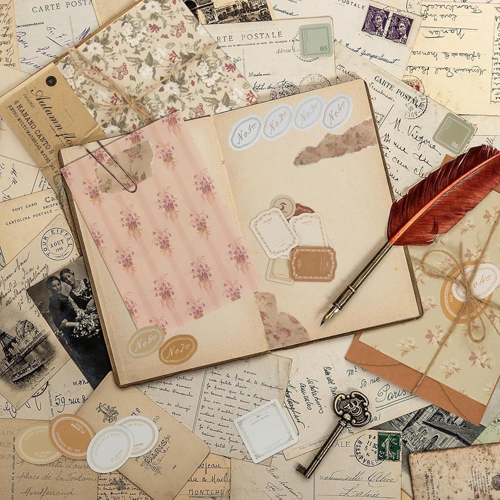 222 قطعة من ورق القصاصات الزهري العتيق مكون من 6 عبوات من ورق الحرف المختلط والمزخرف لمجلة القصاصات غير المرغوب فيها لوازم الأعمال الفنية DIY ملصقات السفر المصنوعة يدويًا 4.3 × 5.9 بوصة