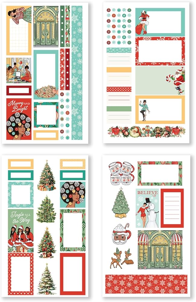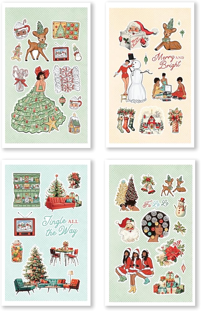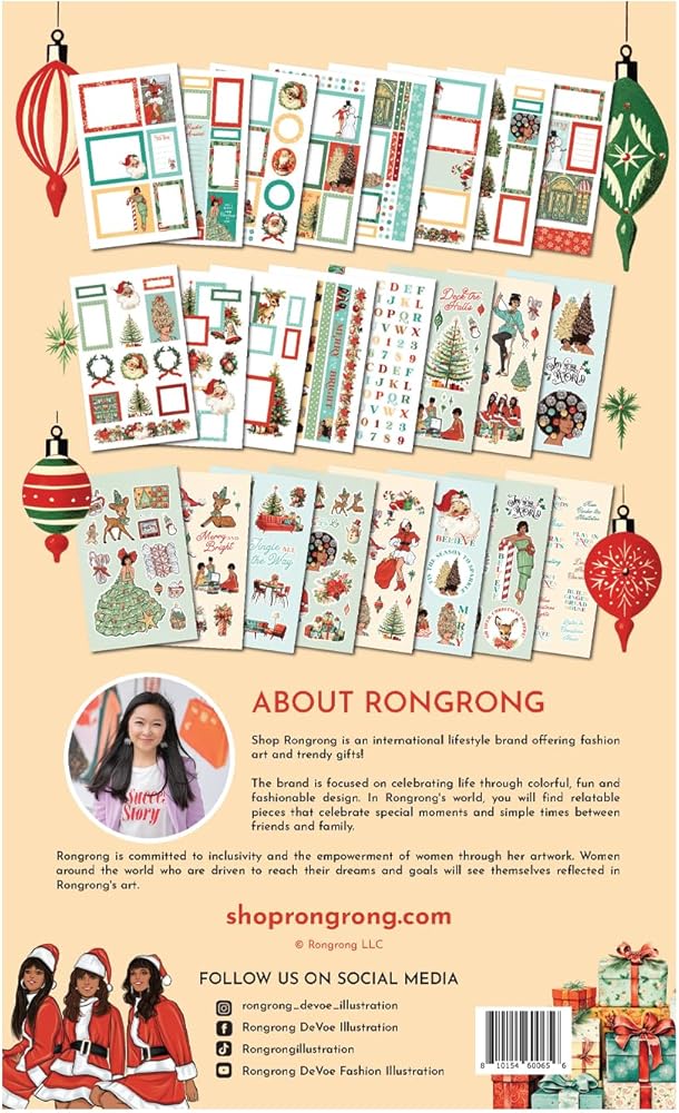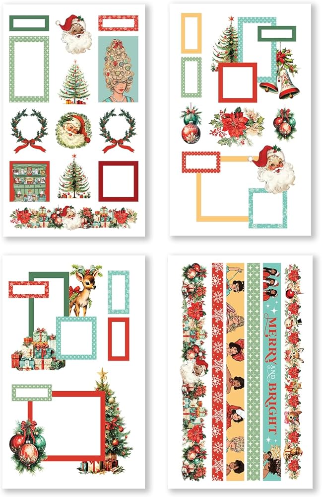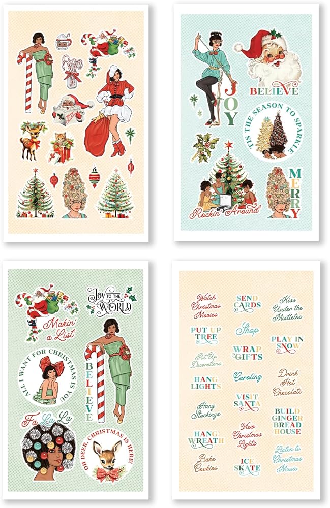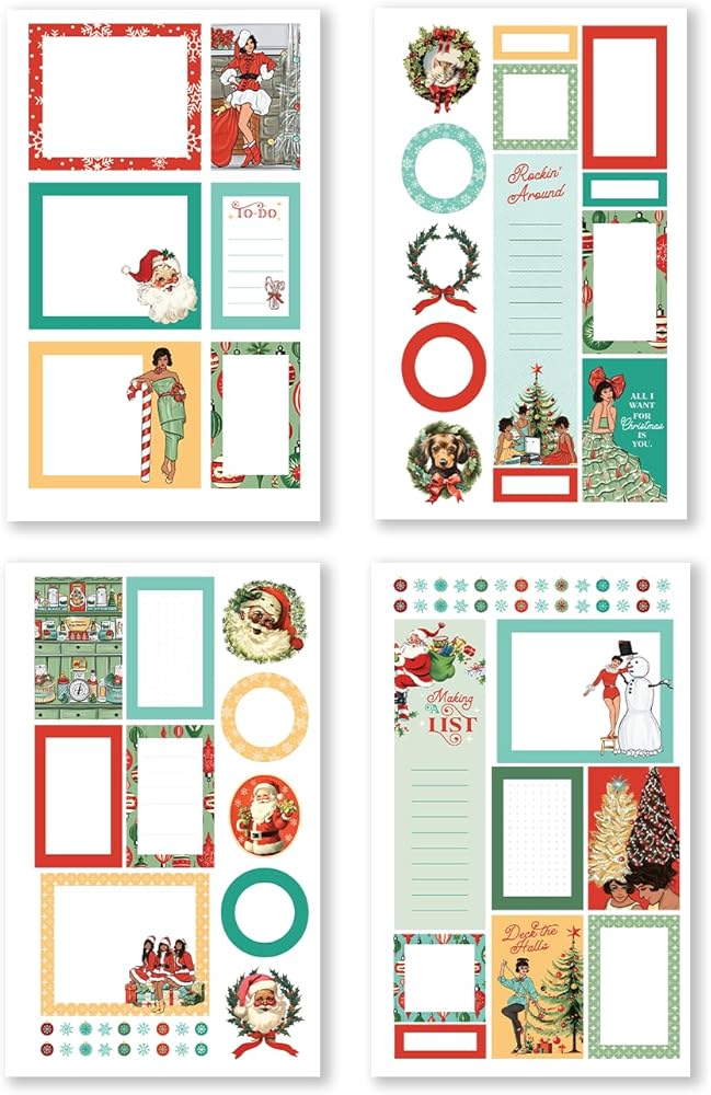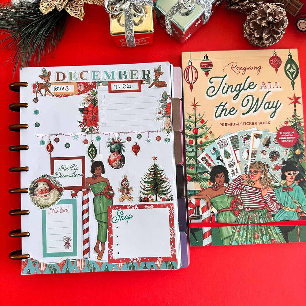 ملصقات مخطط الأعياد من رونجرونج، كتاب جلجل على طول الطريق للمخططين والمجلات - جودة عالية مرسومة يدويًا مثالية لعيد الميلاد - ملحقات سجل القصاصات - 24 صفحة