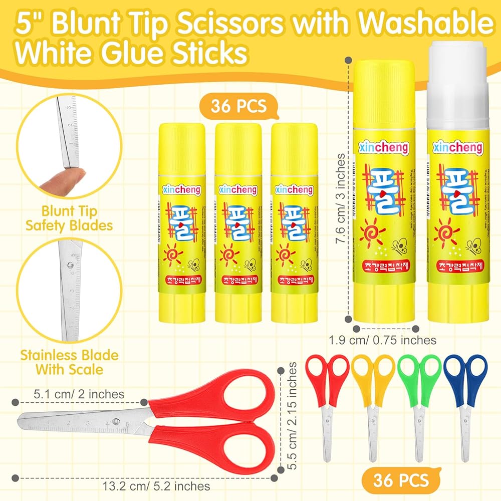 Are you looking for a convenient way to purchase school supplies, This pack offers 72 pencils, 36 scissors, and 36 glue sticks, sufficient for a whole classroom. You no longer have to worry about running out of supplies in the middle of the semester.