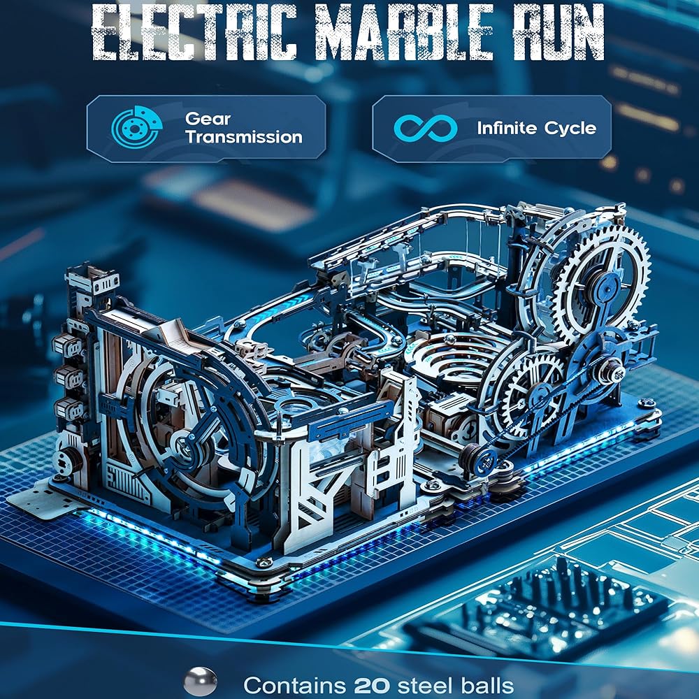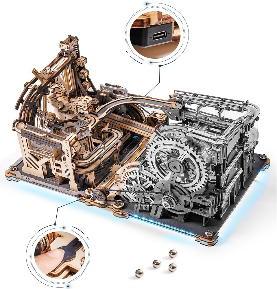 طقم أحجية رخامية ثلاثية الأبعاد من ROKR 2 في 1 تتضمن ميناء فضائي رخامي LGC01 وحزمة ربط LG01، وألغاز خشبية ثلاثية الأبعاد للبالغين مجموعات نماذج ميكانيكية ألعاب البناء