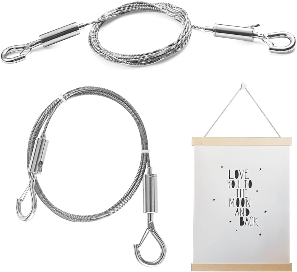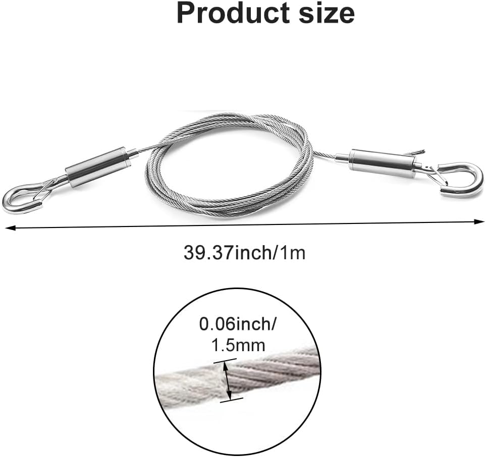 【PACKAGE CONTENT】You will receive 2pcs heavy duty stainless steel picture hanging wires, wire length about 1m/39.37inch, wire diameter about 1.5mm/0.06inch, enough quantity for your daily life use.