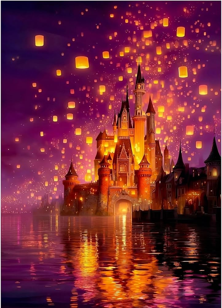 مجموعات الرسم الماسي للقلعة السحرية للبالغين، فوانيس الحفر الكاملة مجموعات الفن الماسي للمبتدئين، لوحات نقاط الماس مستديرة 5D DIY، صور الماس جوهرة الفن والحرف اليدوية ديكور المنزل 12 × 16 بوصة