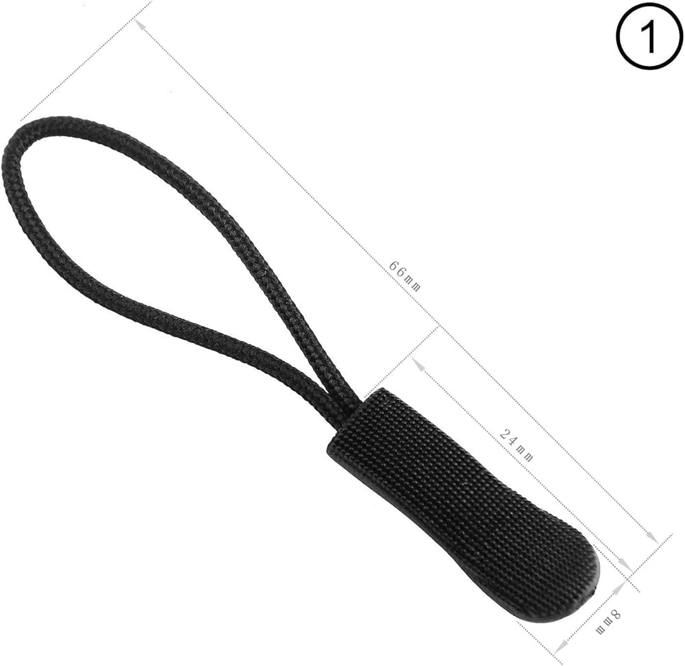 Zipper Pulls, Premium Black Zipper Pull Replacement Zipper Tab Tags Cord Extension Fixer for Luggage, Backpacks, Jackets, Purses, Handbags
