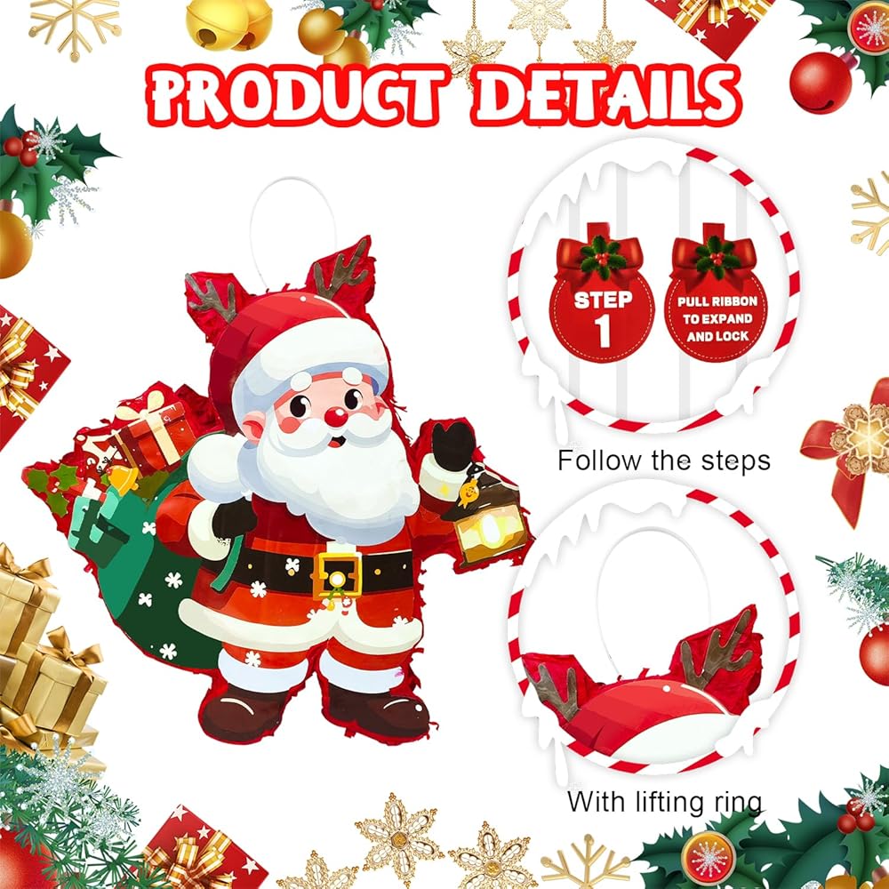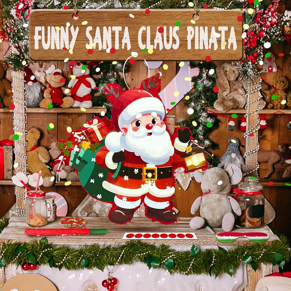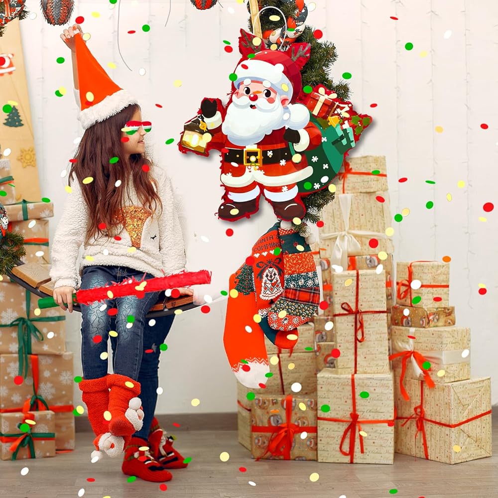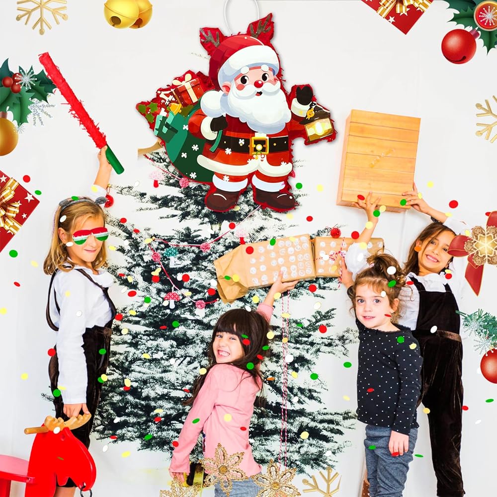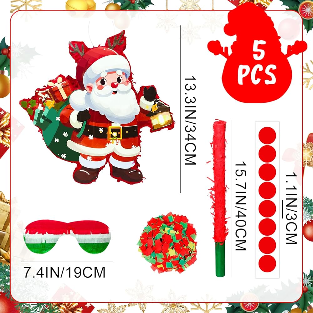 عيد الميلاد سانتا كلوز بينياتا، 13.3 بوصة حزمة بينياتا عيد الميلاد، سانتا كلوز بينياتا، ألعاب حفلات عيد الميلاد عصا معصوب العينين وما إلى ذلك زينة عيد الميلاد لديكورات حفلات عيد الميلاد بيناتا