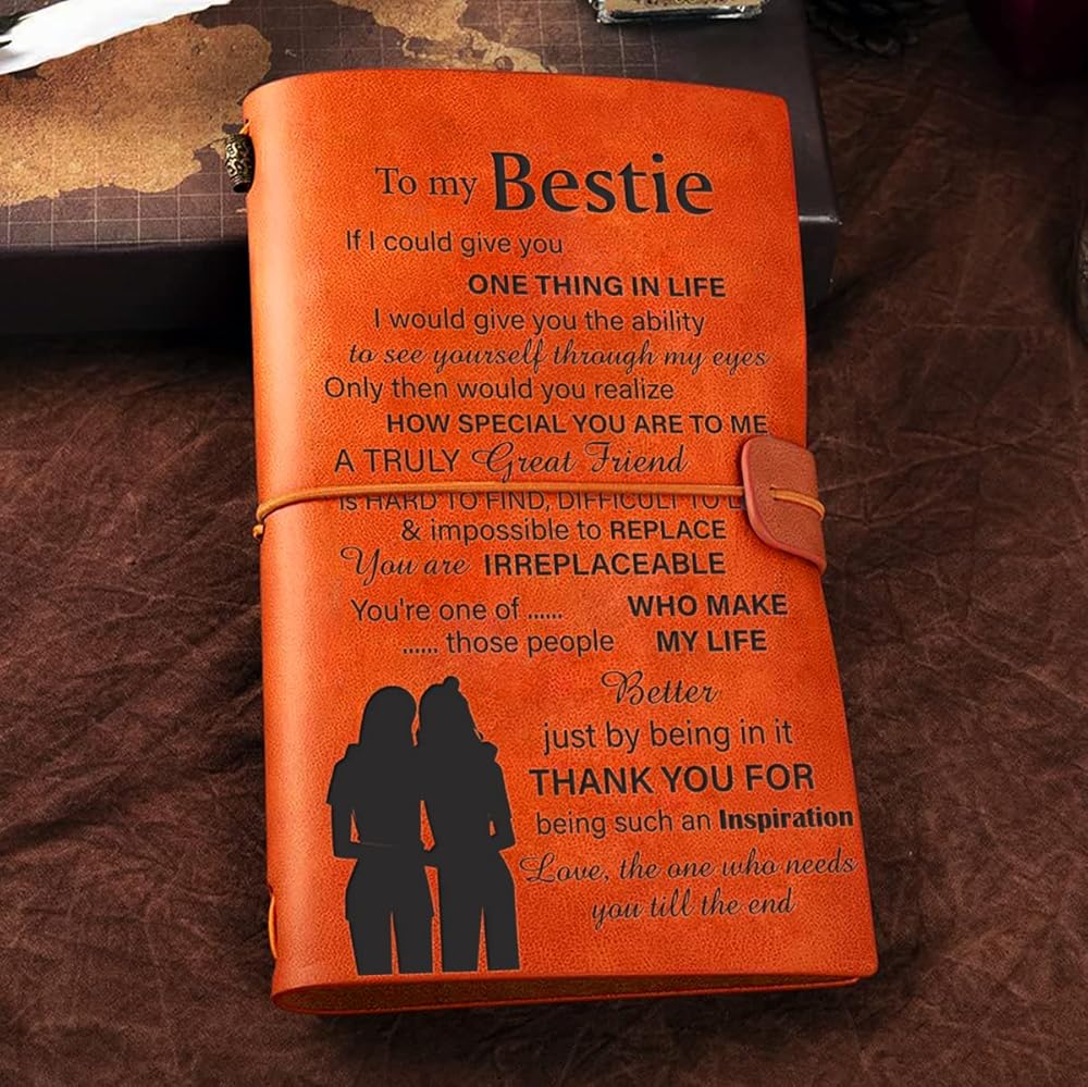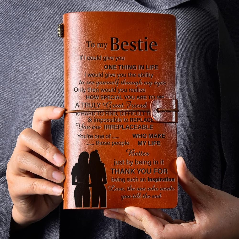 دفتر يوميات جلدي من Bestie من الأخوات - إلى My Bestie صديق عظيم حقًا، هدية مجلة سفر من الجلد المنقوش للصداقة، هدية يومية كتابة منقوشة