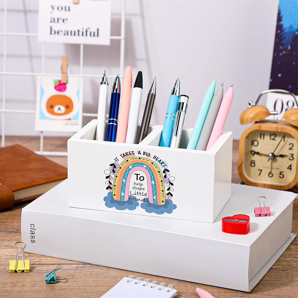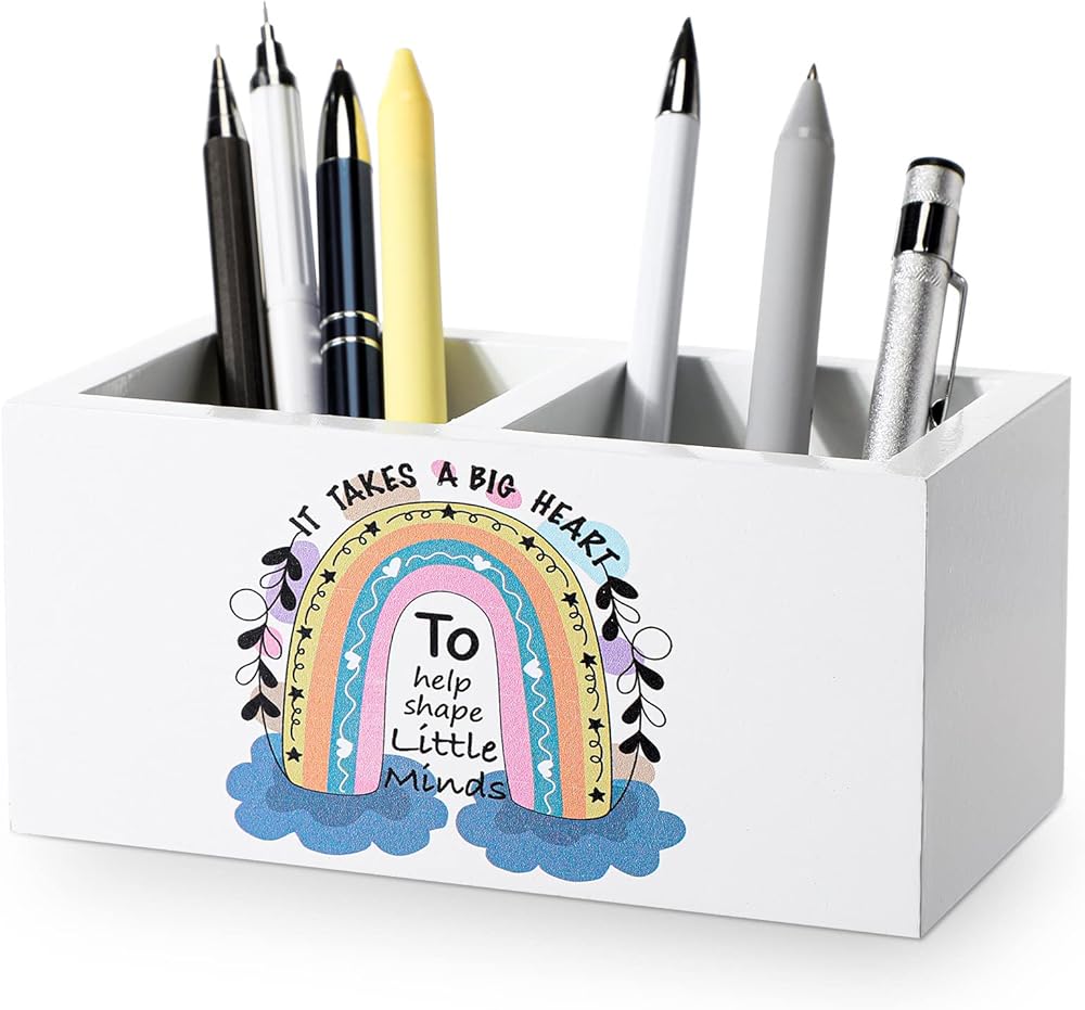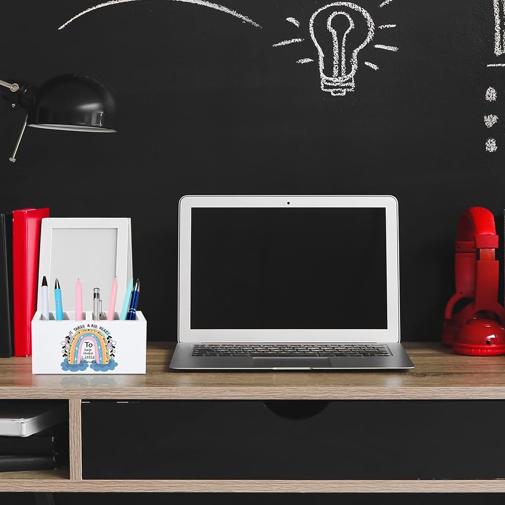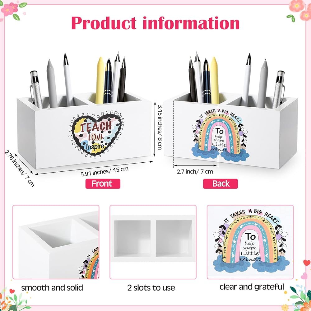 هدايا تقدير المعلم من maitys، منظم مكتب المعلم، حوامل أقلام خشبية، حامل قلم تقدير، منظم قلم سطح المكتب الأبيض، ديكور مكتب المعلم لمستلزمات المكتب، 6 × 2.7 × 3.1 بوصة