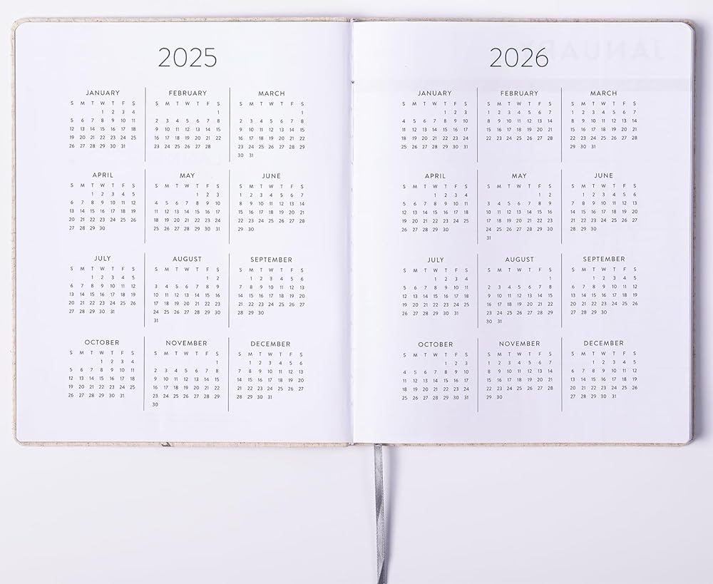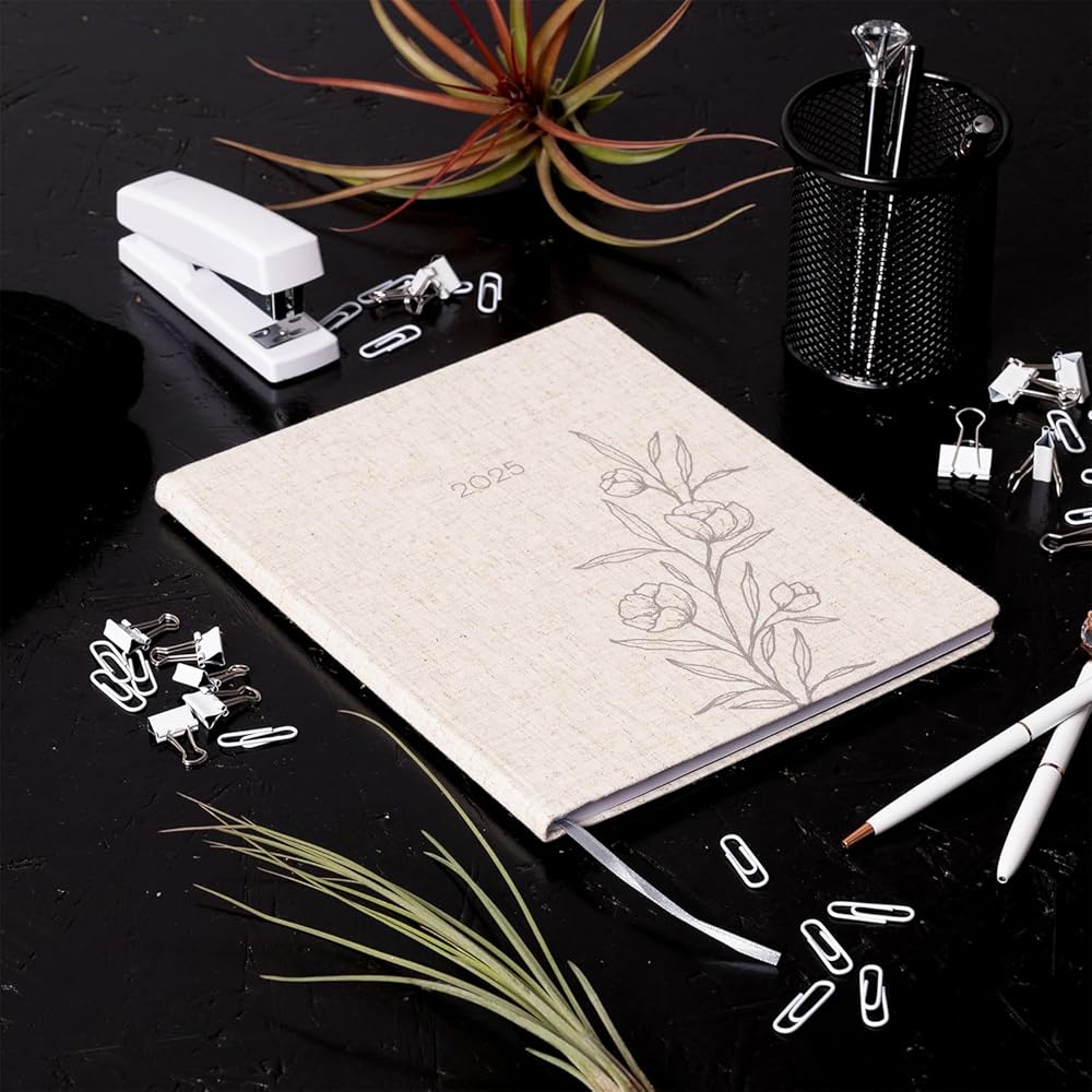 غطاء متين فاخر: غطاء المخططات مصنوع من قماش عالي الجودة. يتمتع الكتاب بملمس وملمس ناعم مذهل، كما أن الغلاف مُخيط بشكل جزئي للحفاظ على صفحاتك آمنة طوال العام. تتضمن إشارة مرجعية بشريط من الساتان المخيط.
