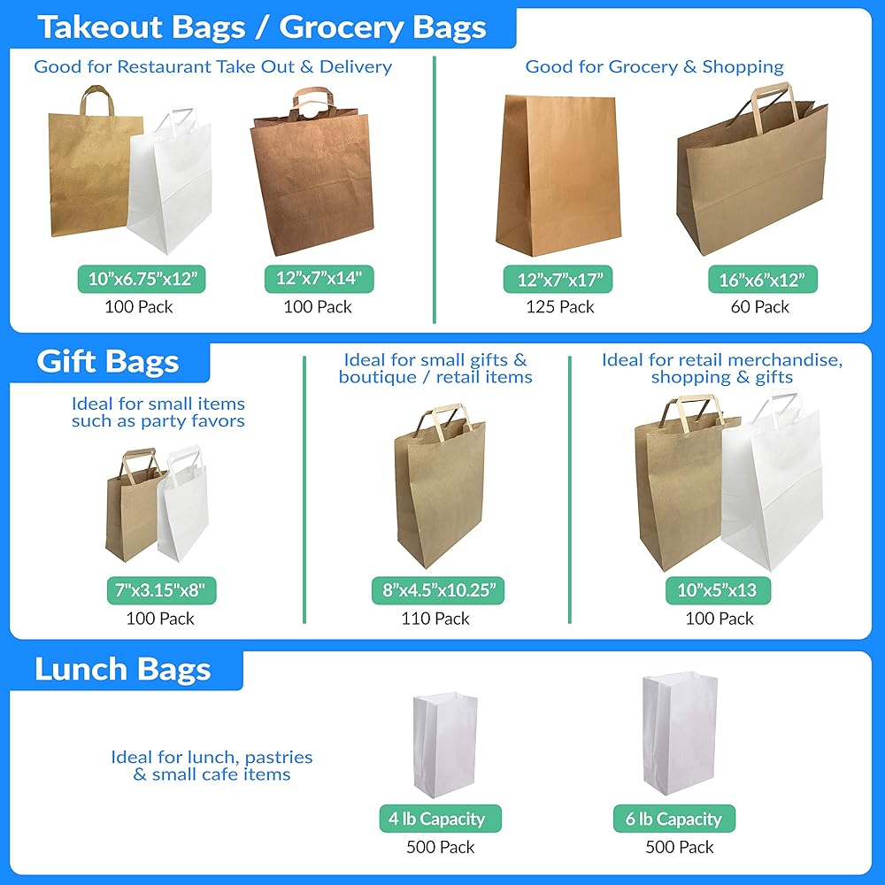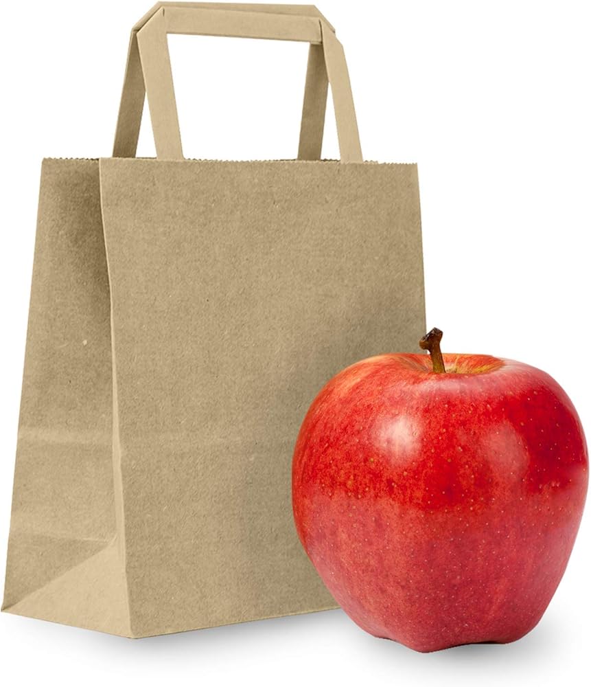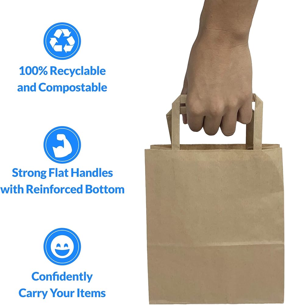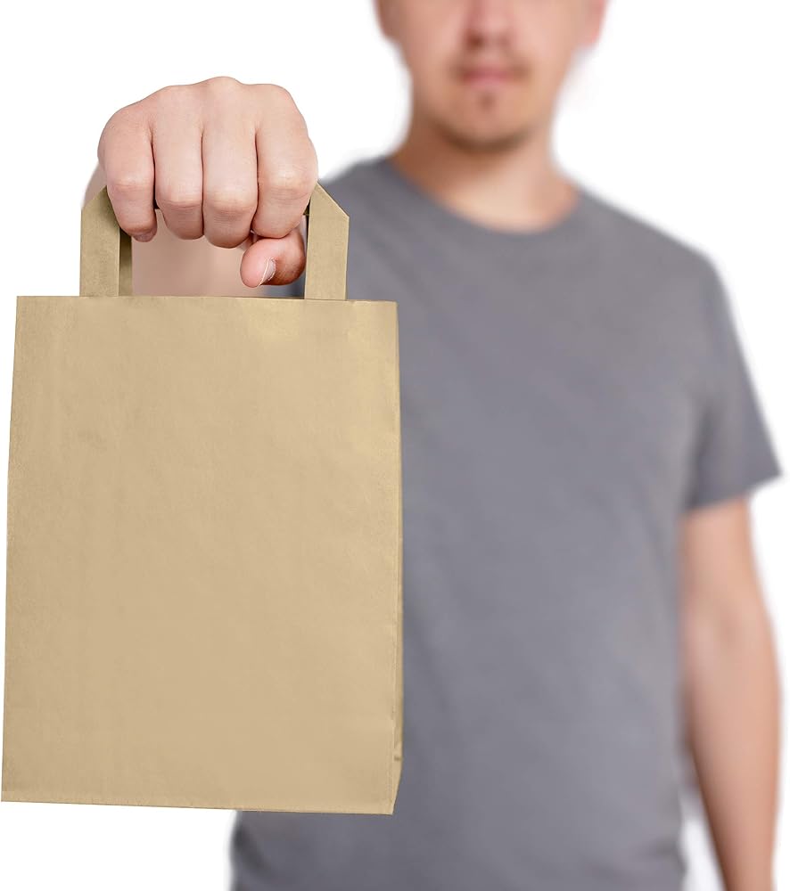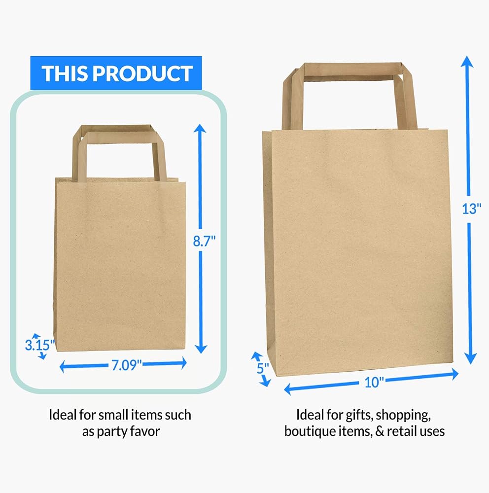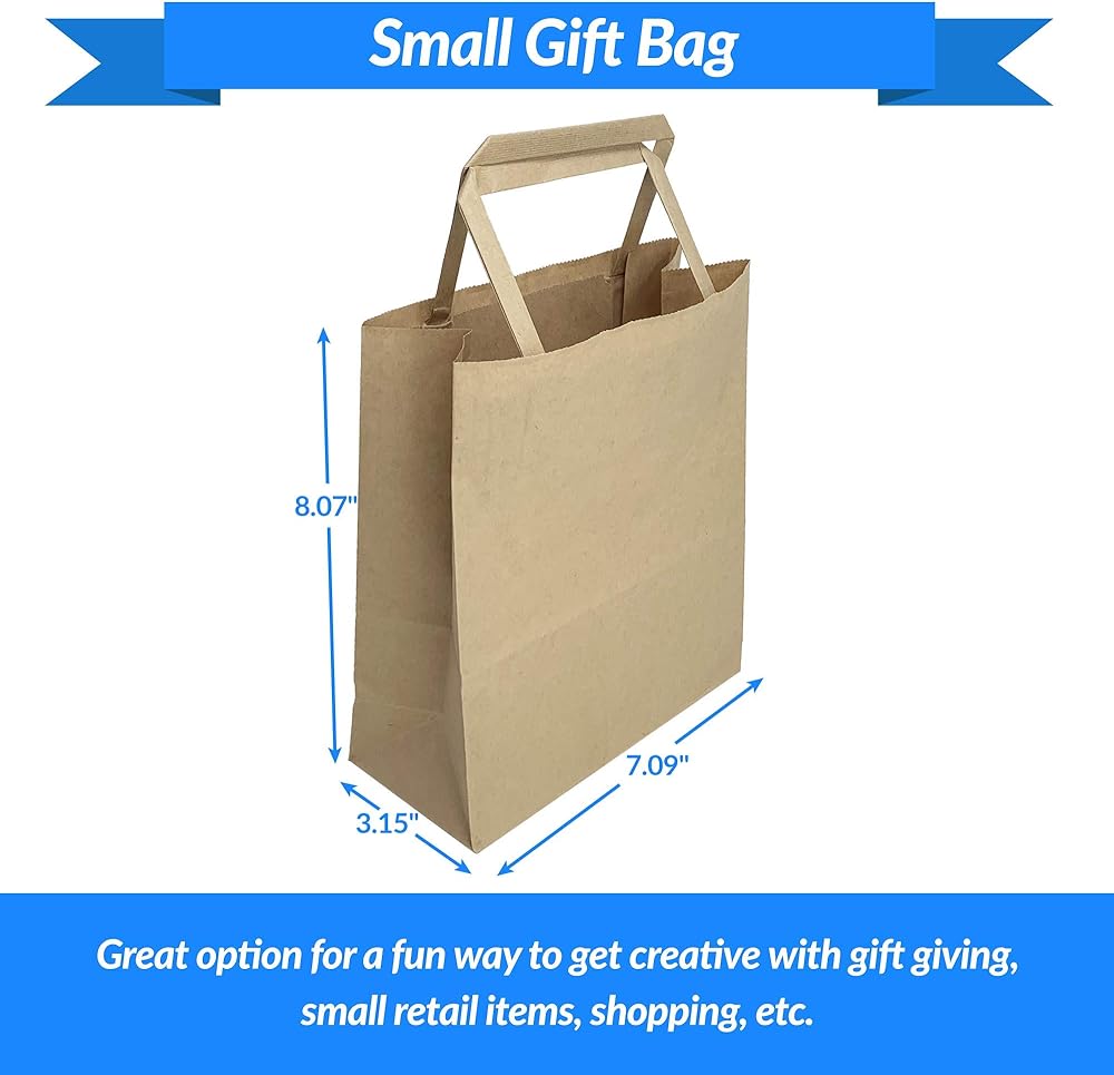 - أكياس ورقية بنية صغيرة بمقابض | صغير (7 بوصة × 3.15 بوصة × 8 بوصة)، راجع الصور لمعرفة المقاس | 100 عبوة