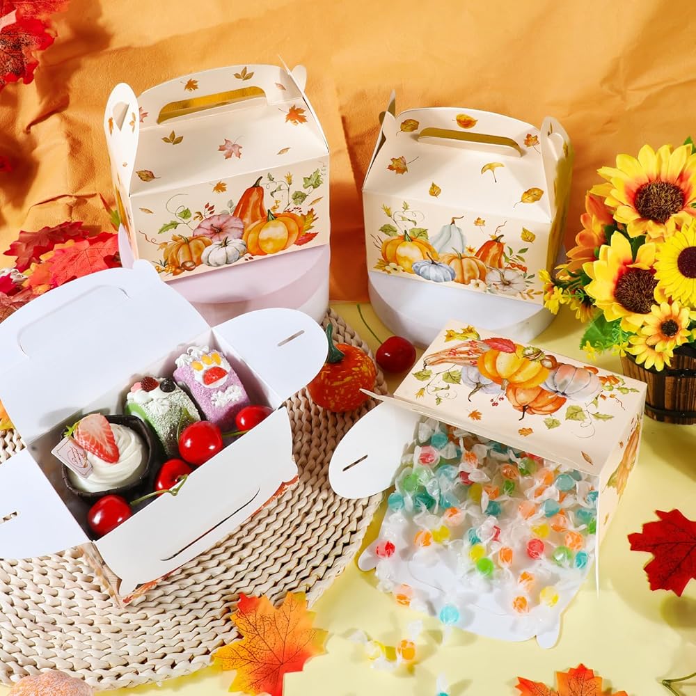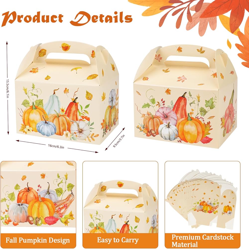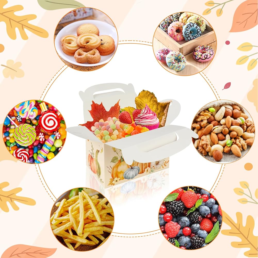 • Wide Application - Great fall pumpkin boxes for small items, can be filled with many small to medium stuff- cookies, chocolates, cakes, snacks, prizes, crafts, fruits, candies, biscuits, etc. The best choice for you to pack fall treats
