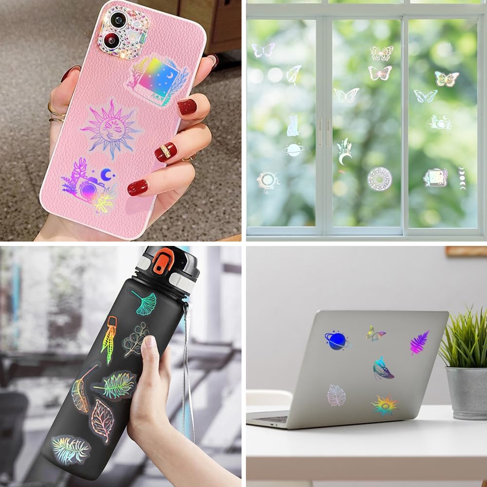 تأثيرات مرئية مذهلة: تم تصميم الملصقات بلمعان ثلاثي الأبعاد، وتظهر تأثيرات مبهرة وملونة تحت إضاءة وزوايا مختلفة، جميلة للغاية وأنيقة، مما يضيف لمسة من الألوان الزاهية إلى حياتك.